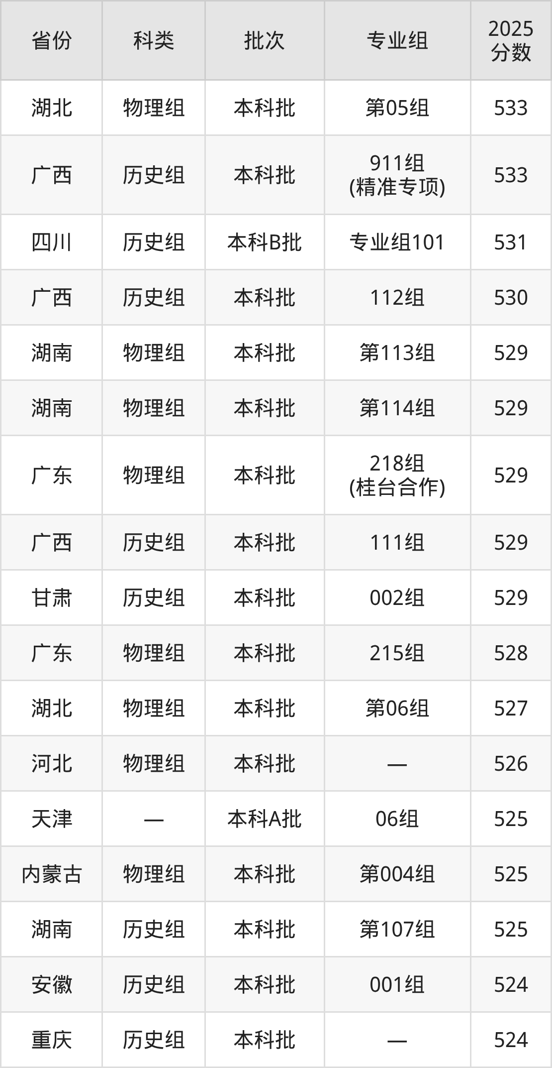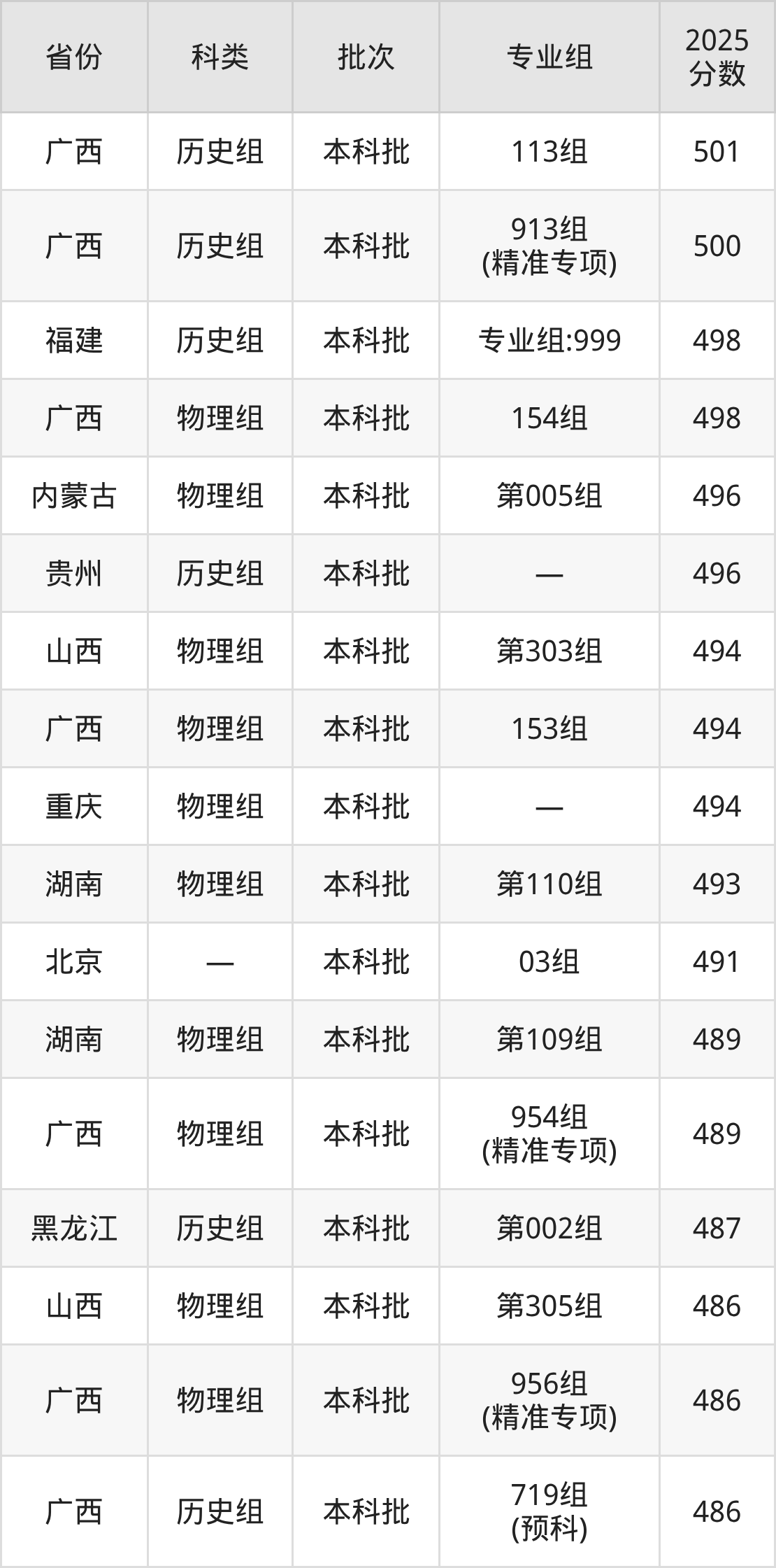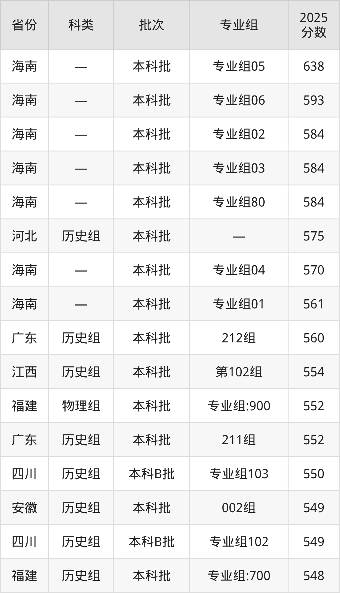 而海南地区考生的分数门槛最高,2025年南宁师范大学专业组05在海南招生最低分为638分,考生至少要超本科线158分才有可能被录取。