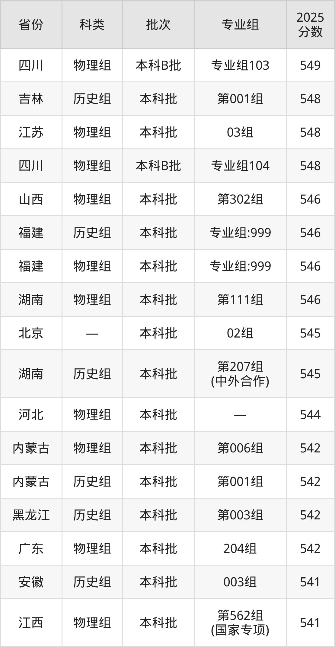 下面是华侨大学2025年在全国各省的录取分数线一览表,供参考:
