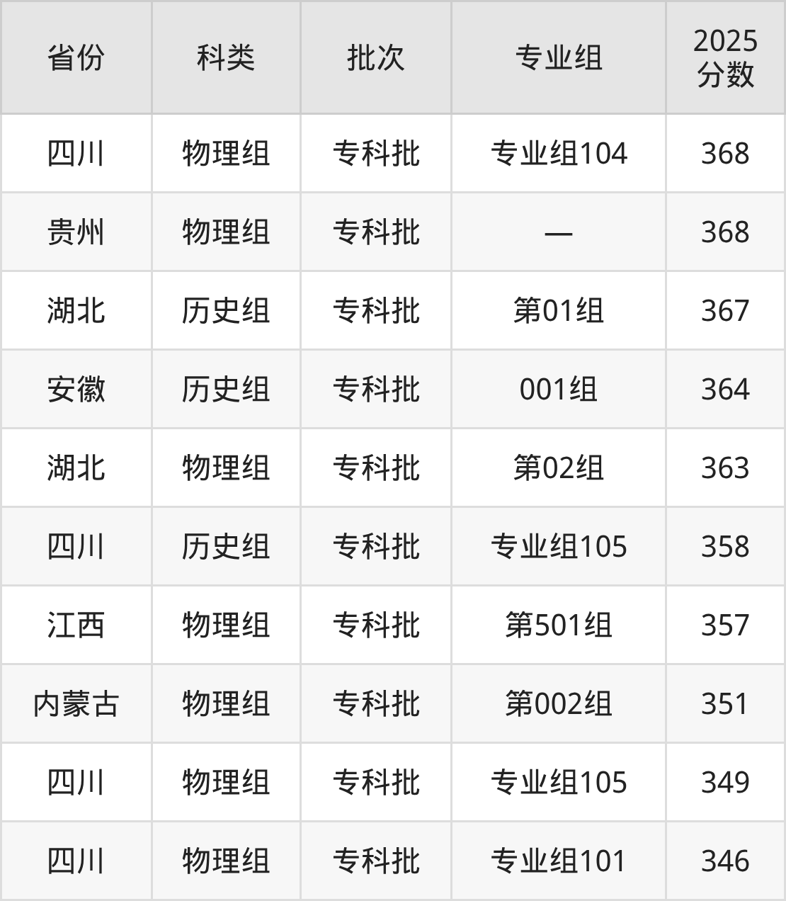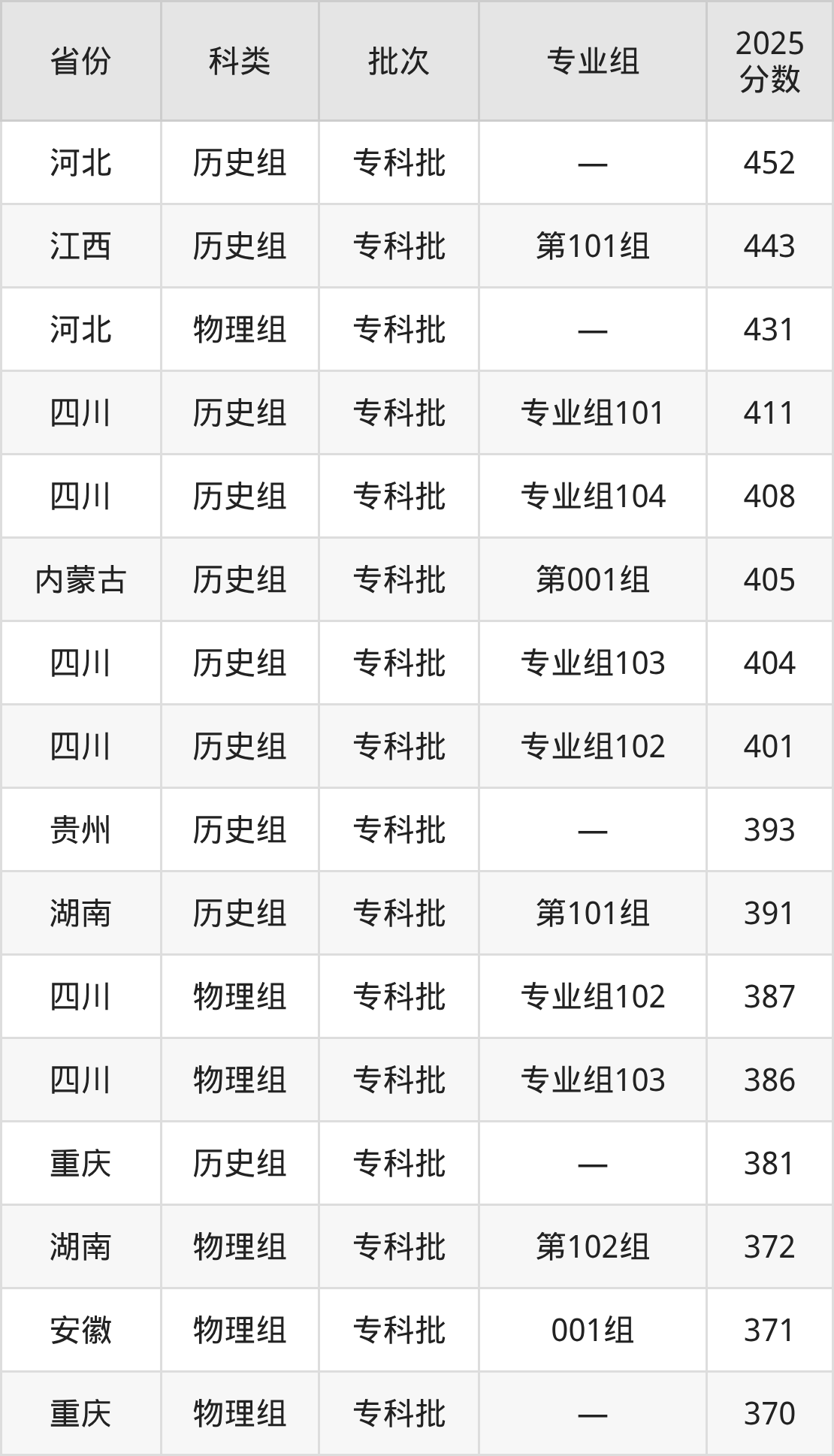 下面是重庆青年职业技术学院2025年在全国各省的录取分数线一览表,供参考: