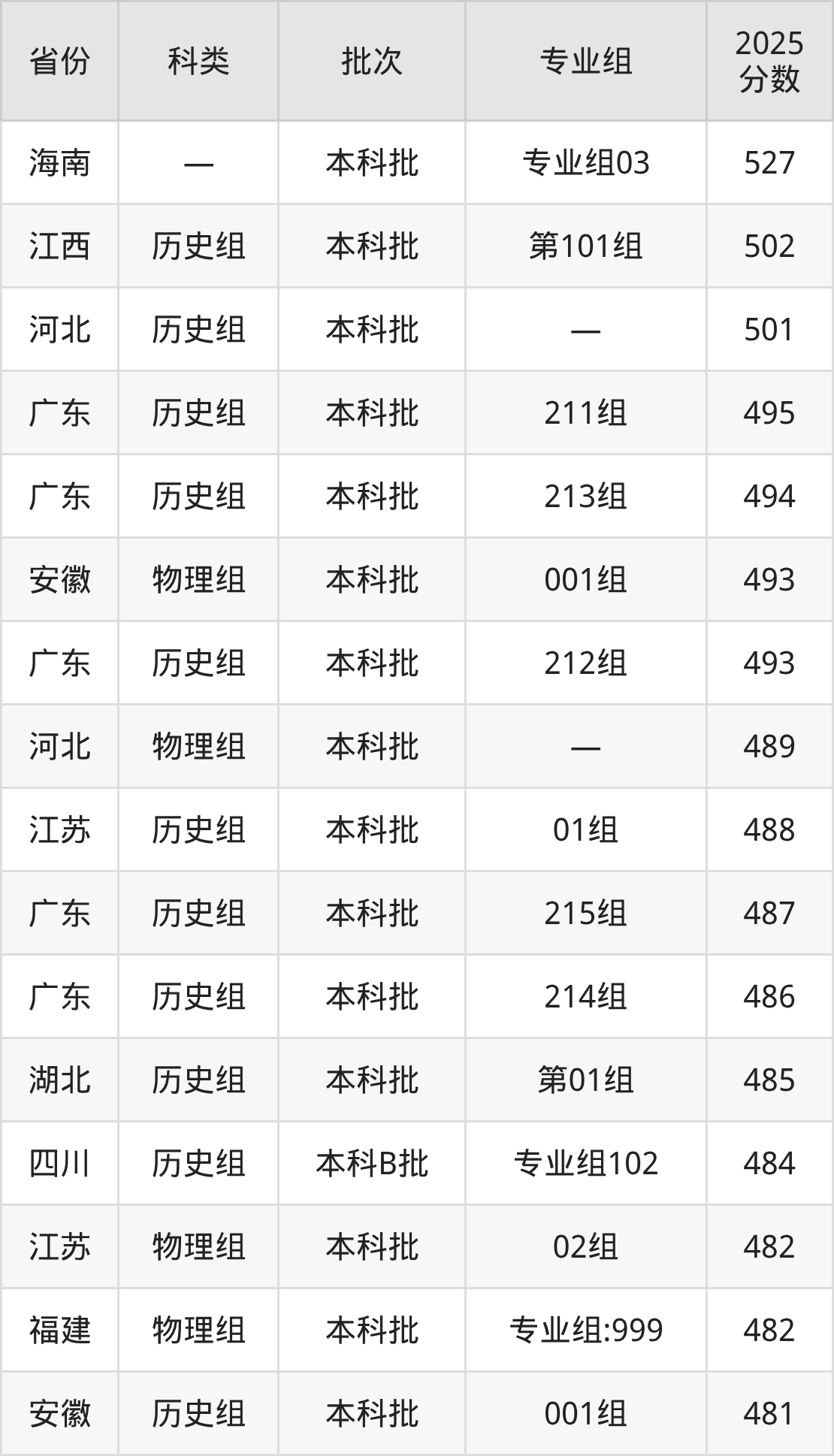 而海南地区考生的分数门槛最高,2025年广东外语外贸大学南国商学院专业组03在海南招生最低分为527分,考生至少要超本科线47分才有可能被录取。