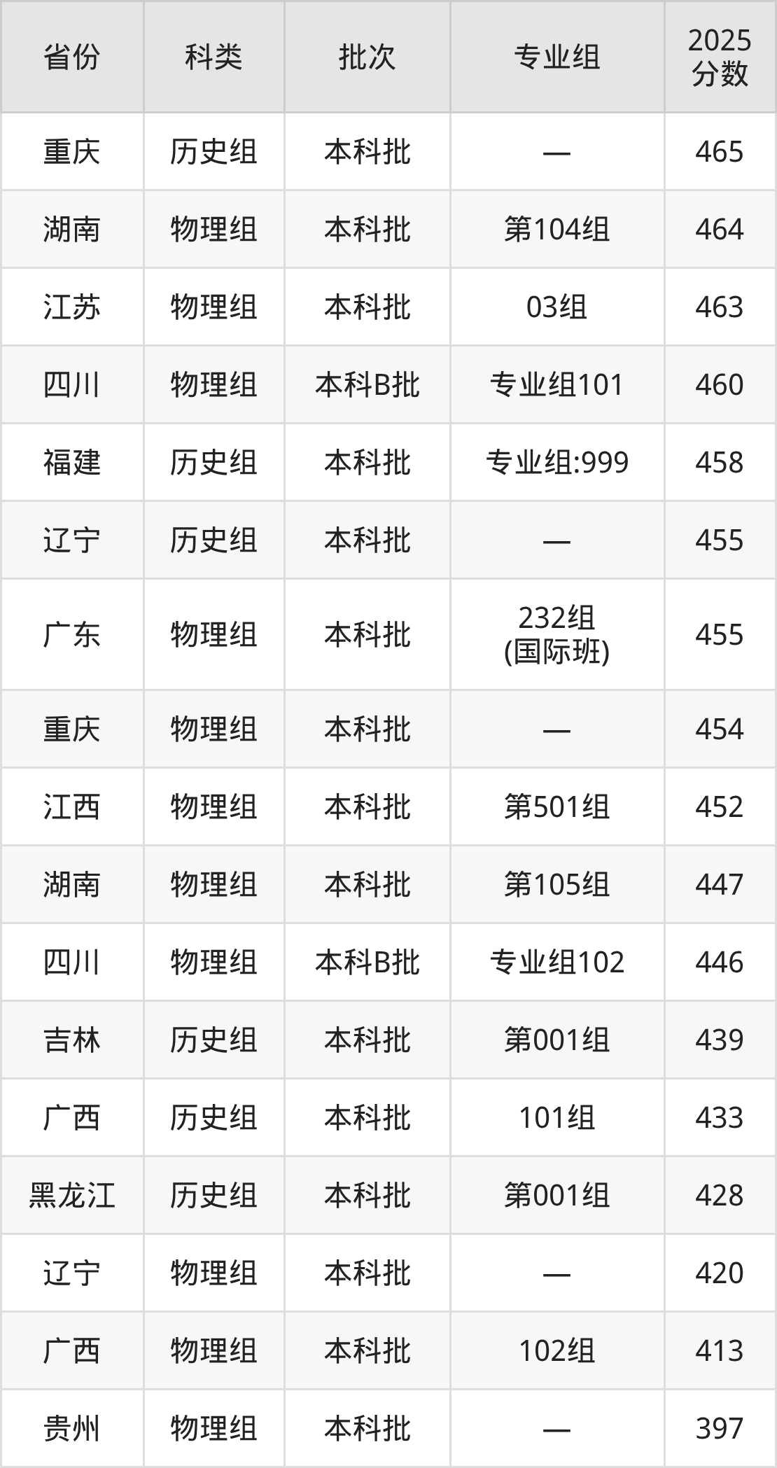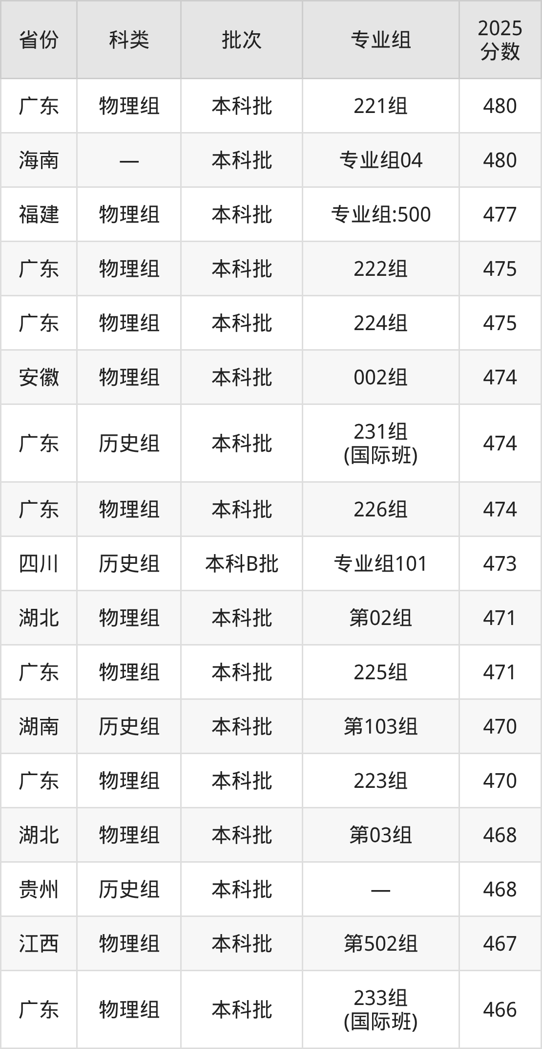 下面是广东外语外贸大学南国商学院2025年在全国各省的录取分数线一览表,供参考: