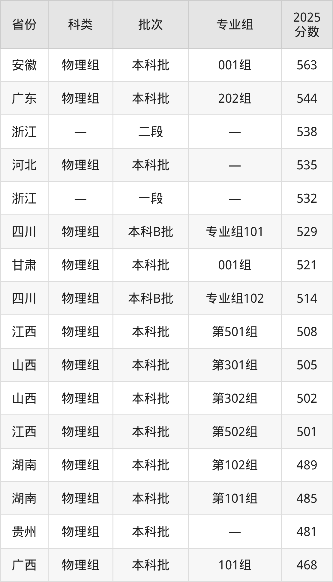 而安徽地区物理组考生的分数门槛最高,2025年杭州医学院001组在安徽招生最低分为563分,考生至少要超本科线102分才有可能被录取。