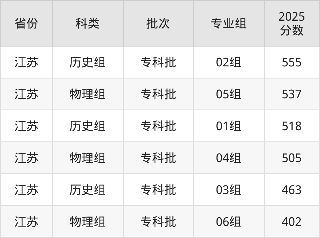 江苏司法警官职业学院2026年录取分数需在高招结束官方数据公布后更新,2026届有意向报考该校的同学,可以在填报志愿时参考江苏司法警官职业学院2025年录取分数线: