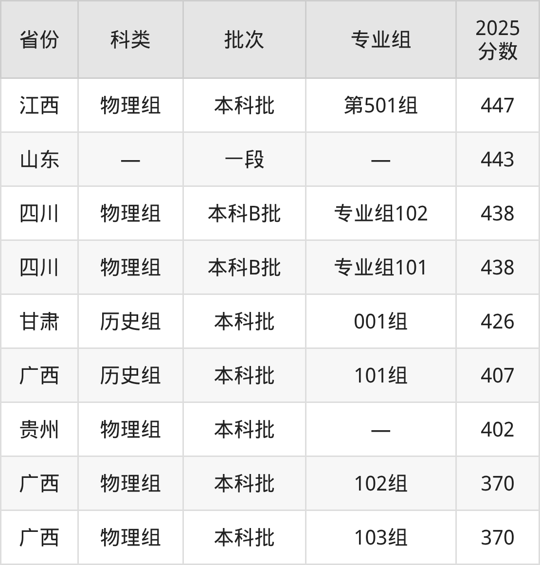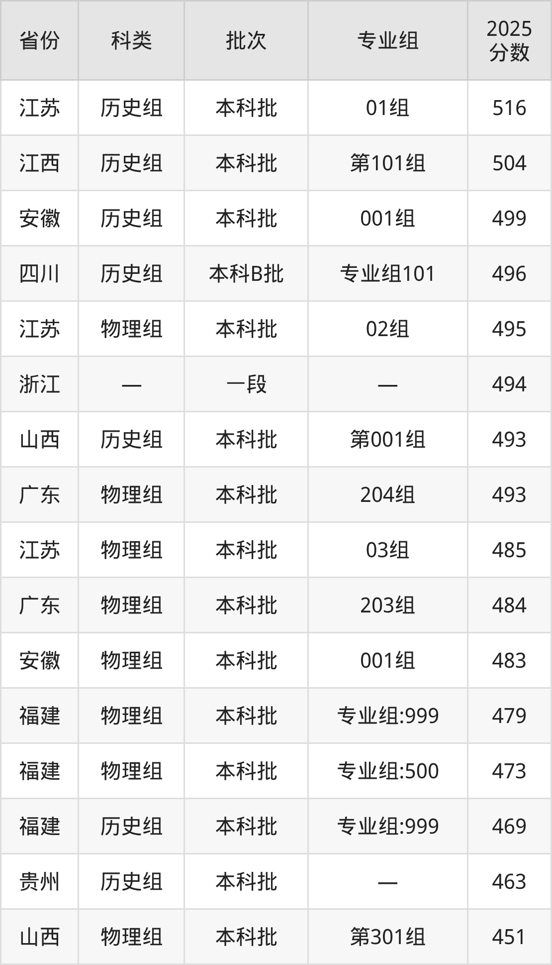 而江西地区历史组考生的分数门槛最高,2025年苏州科技大学天平学院第101组在江西招生最低分为504分,考生至少要超本科线18分才有可能被录取。