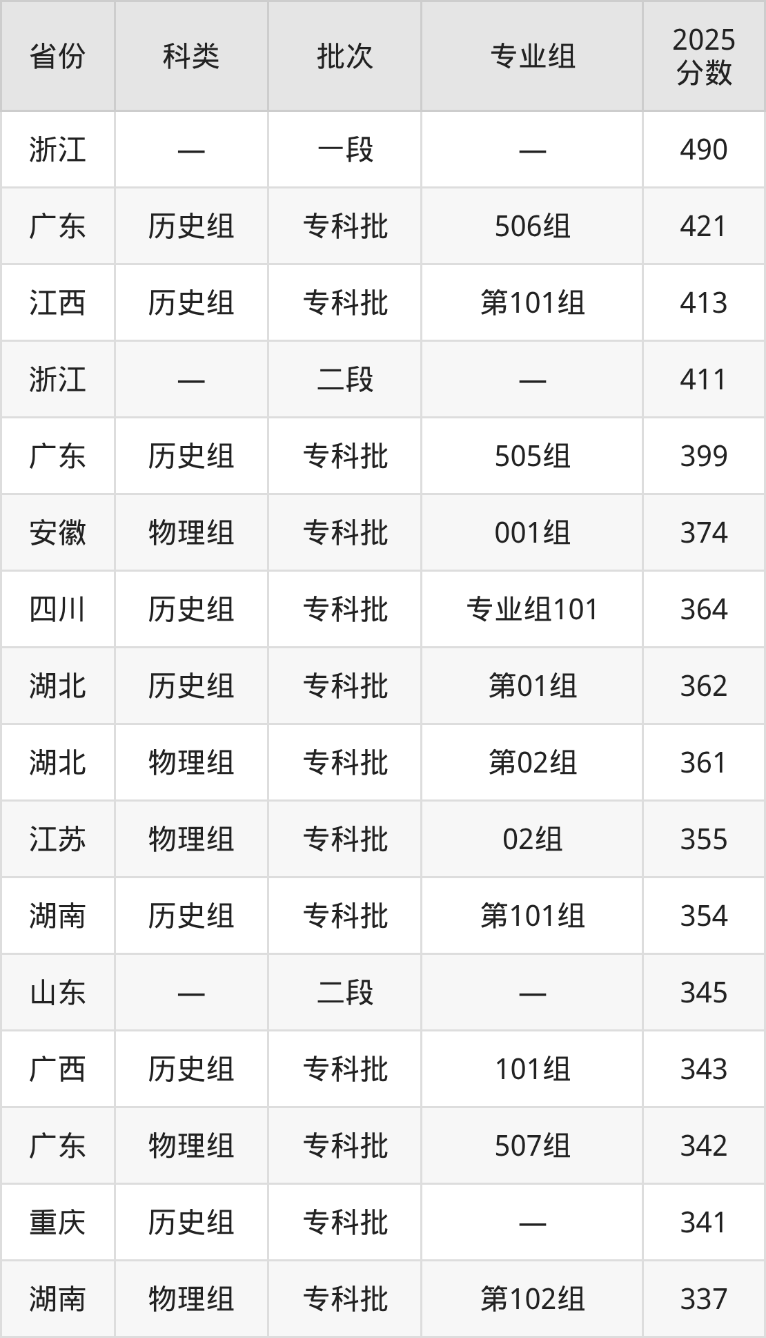 而浙江地区考生的分数门槛最高,2025年随州职业技术学院在浙江招生最低分为490分,考生至少要超一段线0分才有可能被录取。