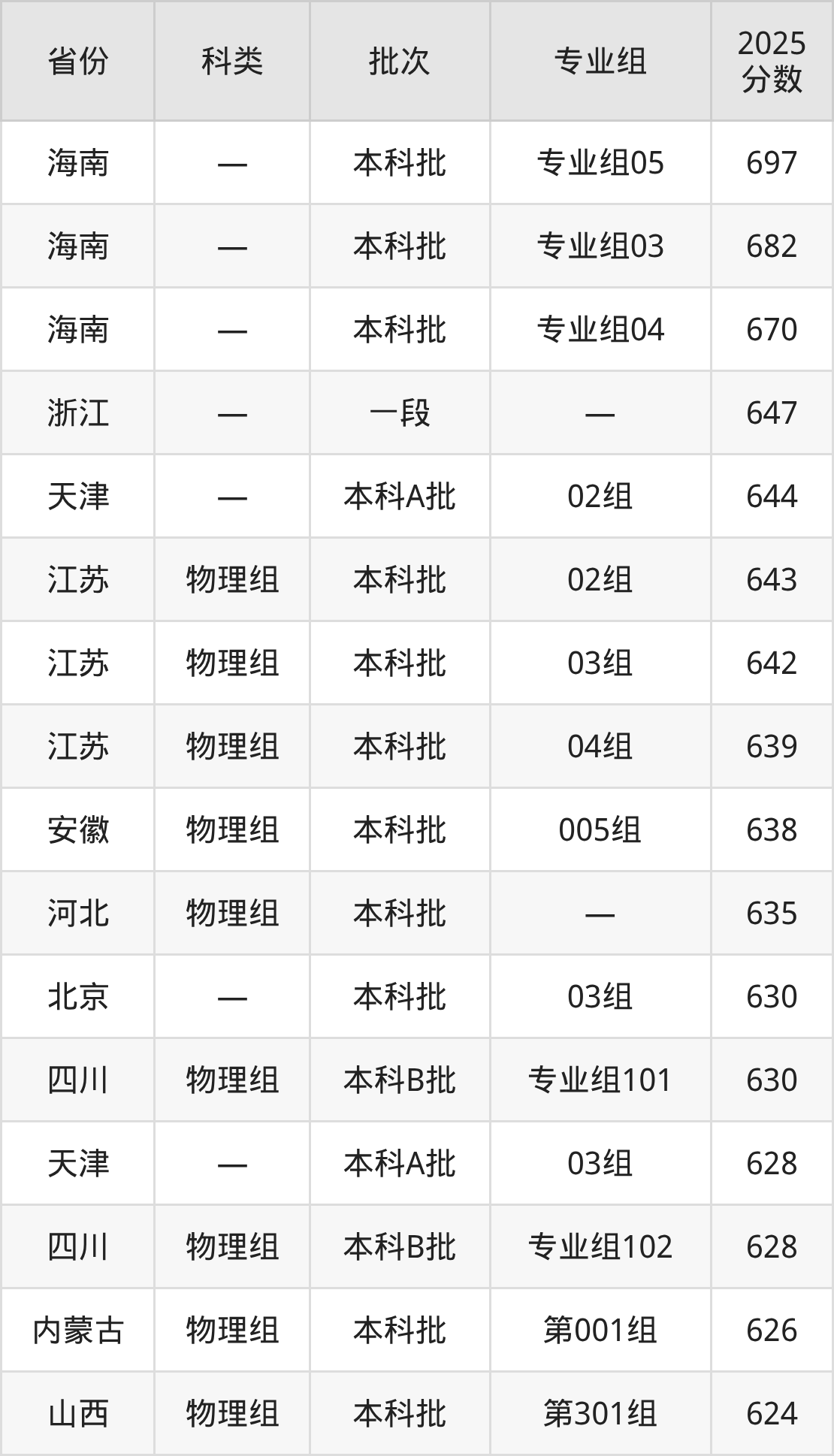 而海南地区考生的分数门槛最高,2025年南京理工大学专业组05在海南招生最低分为697分,考生至少要超本科线217分才有可能被录取。
