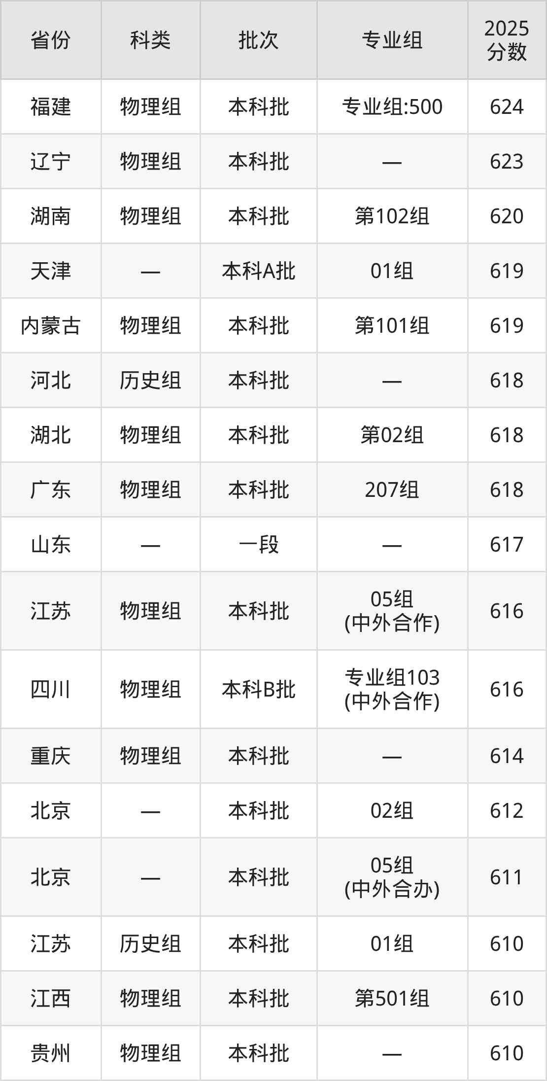 下面是南京理工大学2025年在全国各省的录取分数线一览表,供参考: