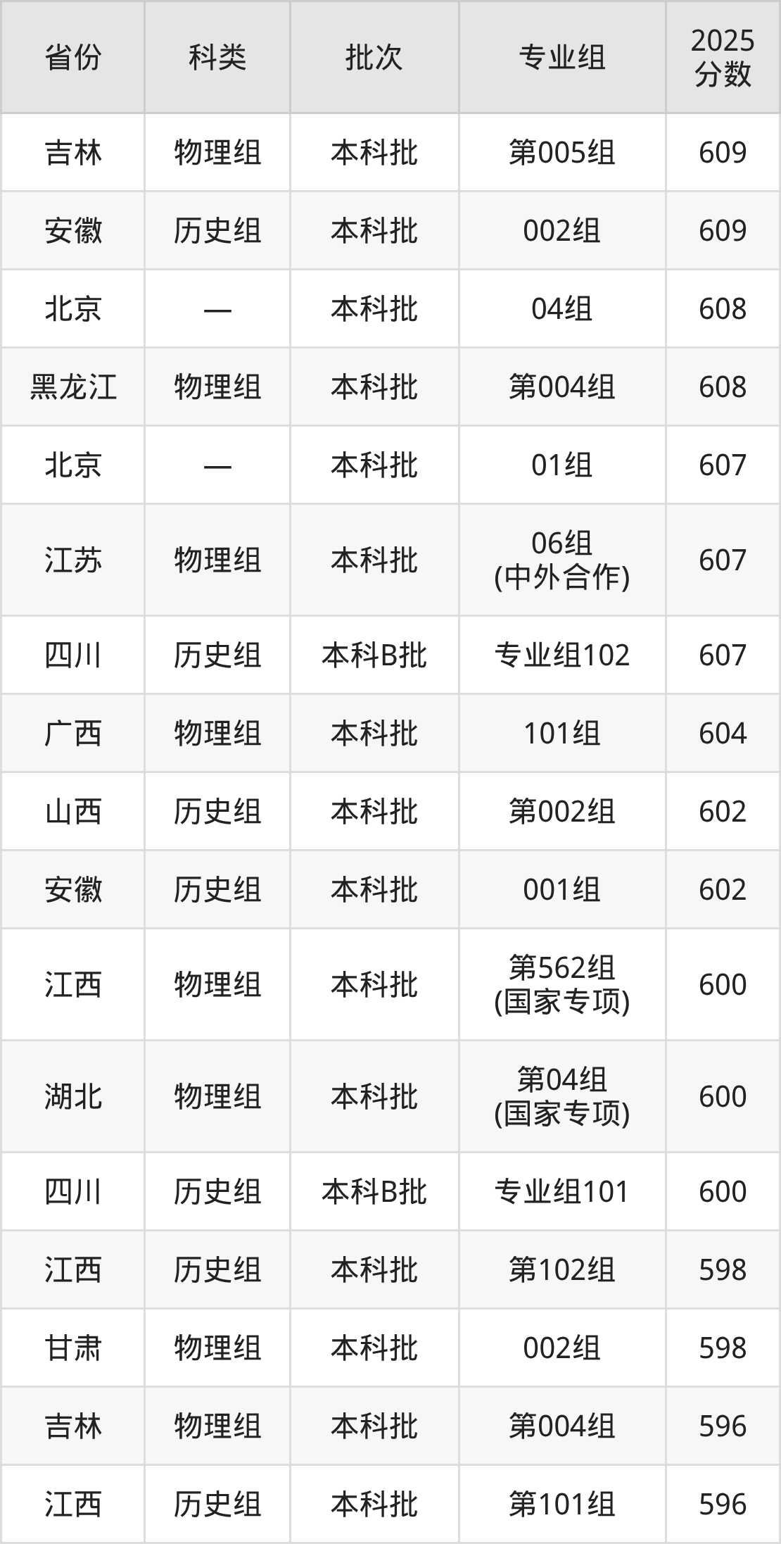 2025年南京理工大学在全国普通批次招生的录取分数范围位于524~697分之间,其中省内分数范围为607分~643分,物理组最低分专业组为“06组(中外合作)”,考生607分即可报考,历史组最低分专业组为“01组”,考生610分即可报考。