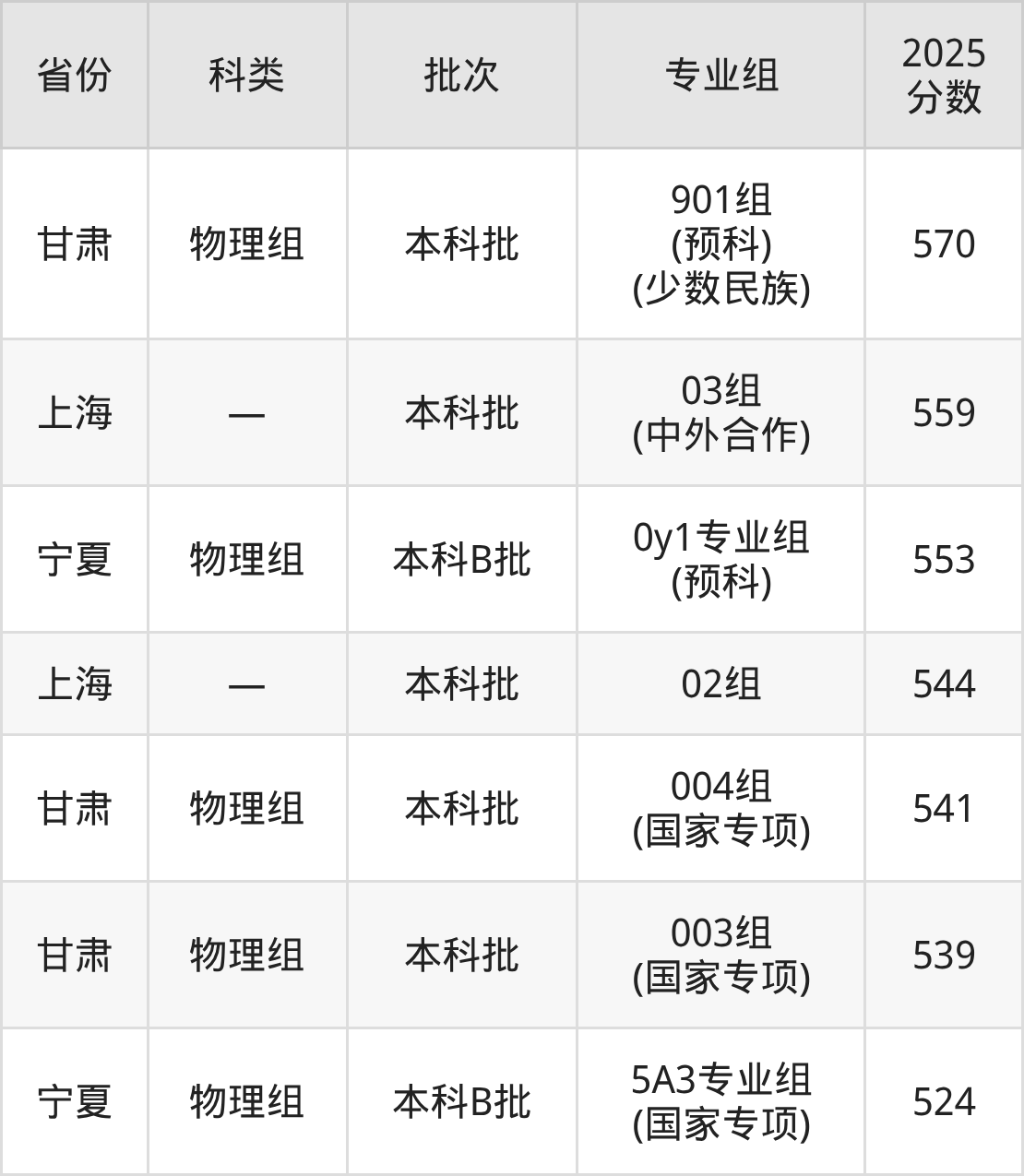 南京理工大学在省外招生的最低分为524分,其次是甘肃物理组考生,上南京理工大学至少要超本科线165分(539分)。