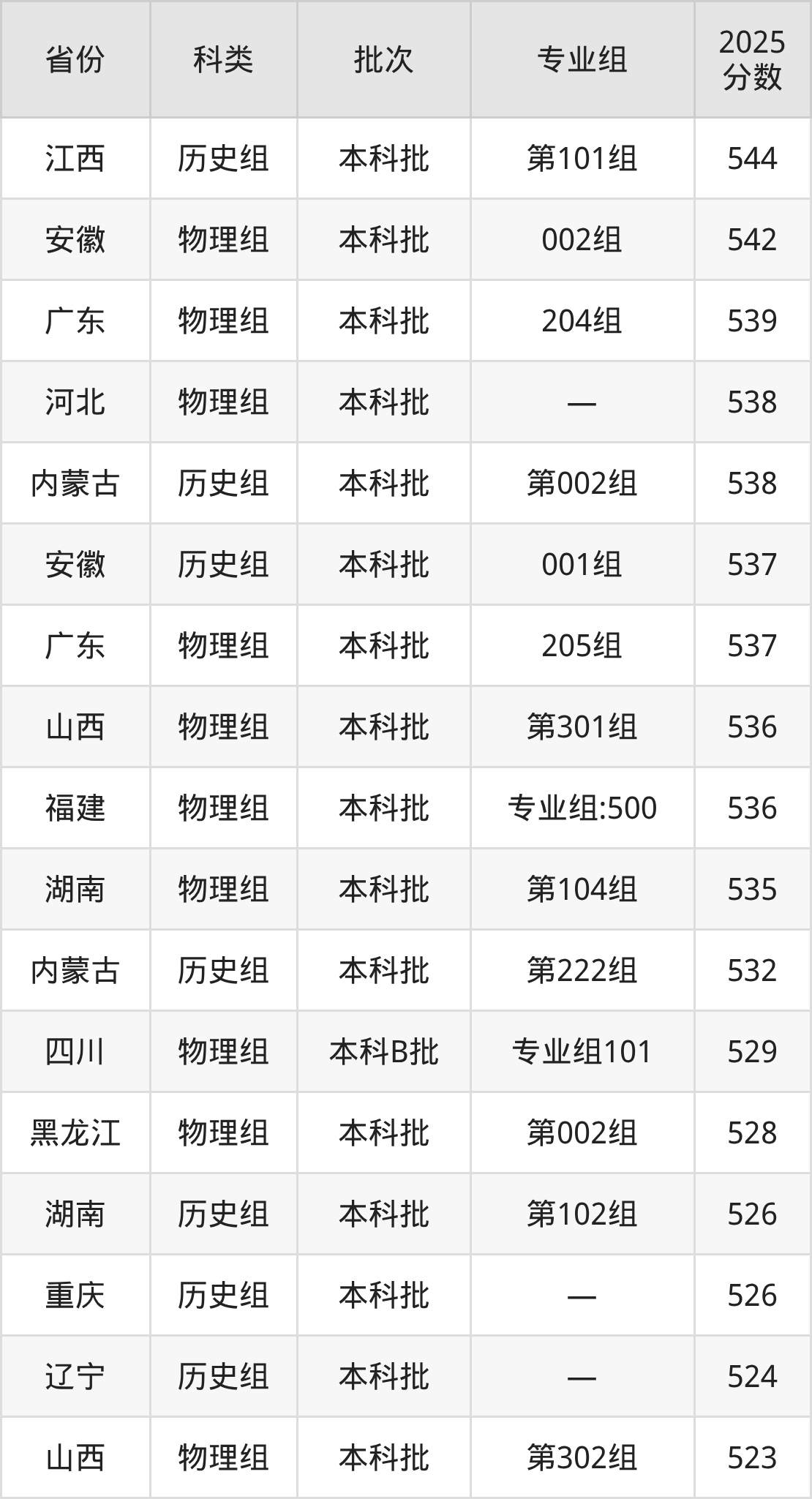 下面是山东理工大学2025年在全国各省的录取分数线一览表,供参考: