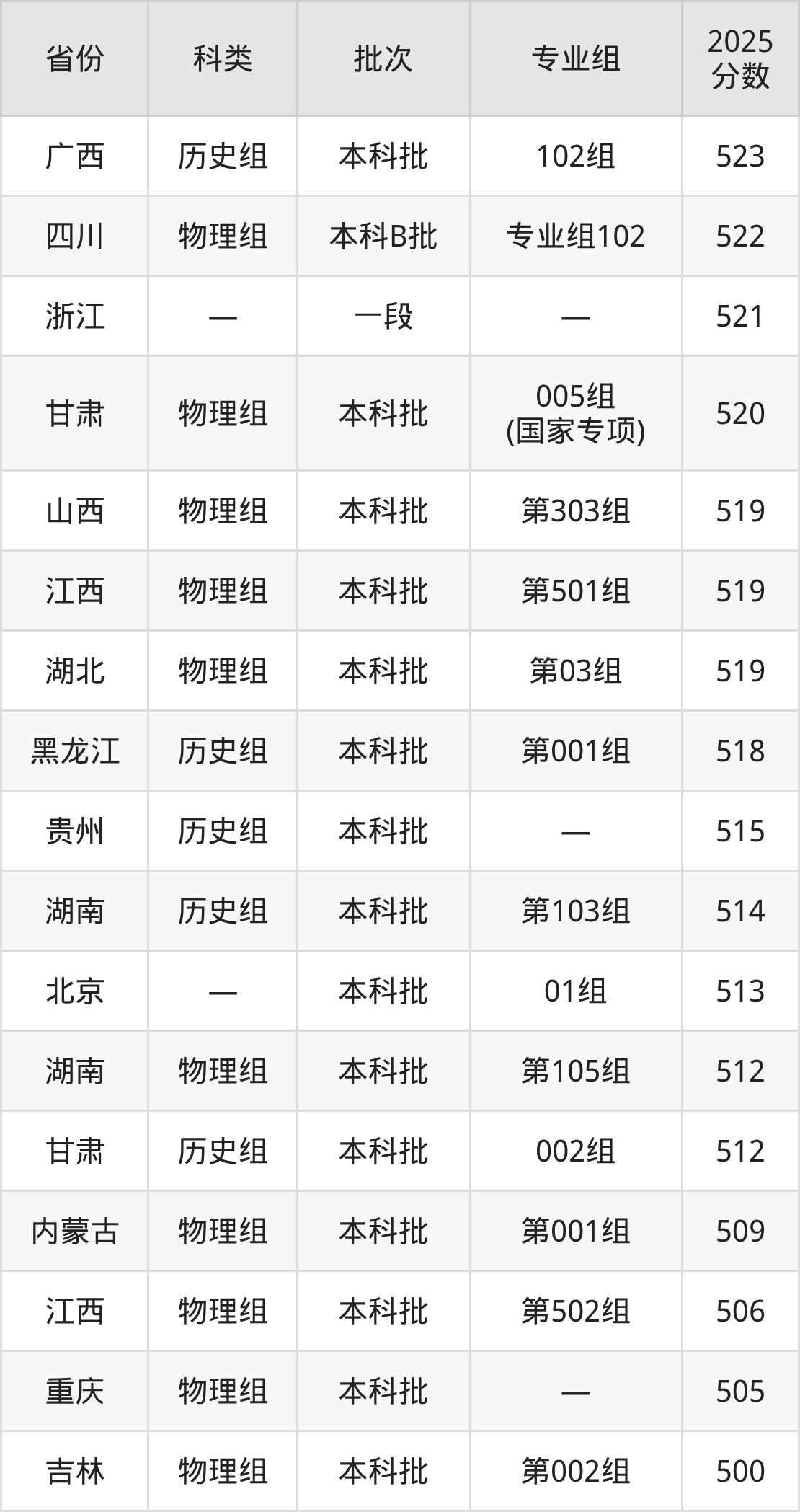 而海南地区考生的分数门槛最高,2025年山东理工大学专业组01在海南招生最低分为578分,考生至少要超本科线98分才有可能被录取。