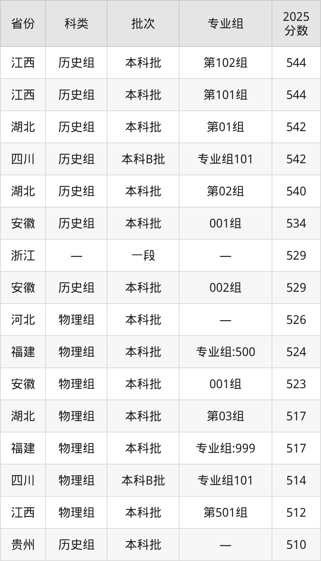 而江西地区历史组考生的分数门槛最高,2025年台州学院第102组在江西招生最低分为544分,考生至少要超本科线58分才有可能被录取。