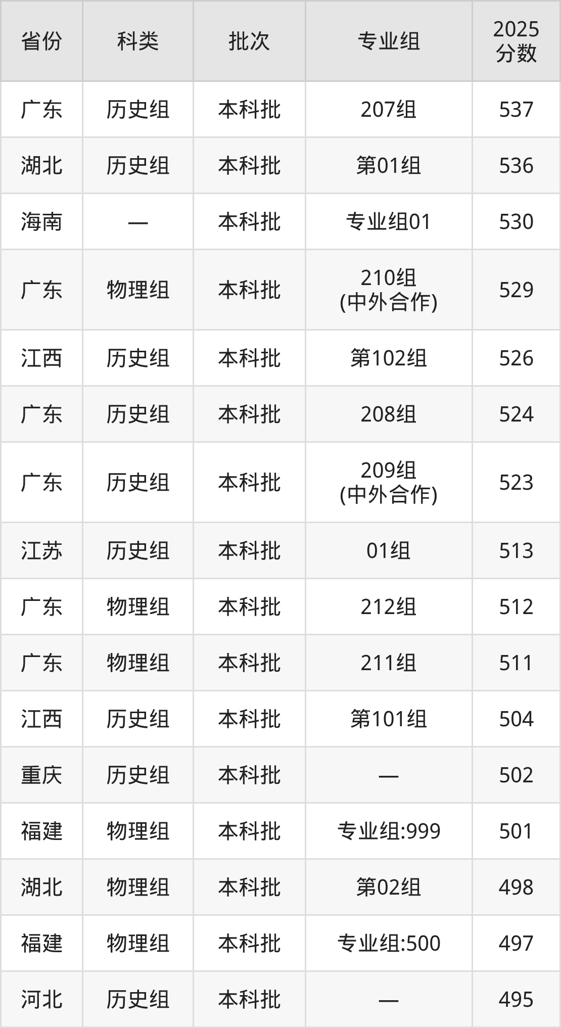 而广东地区历史组考生的分数门槛最高,2025年上海杉达学院207组在广东招生最低分为537分,考生至少要超本科线73分才有可能被录取。