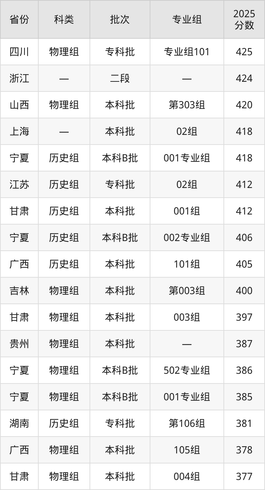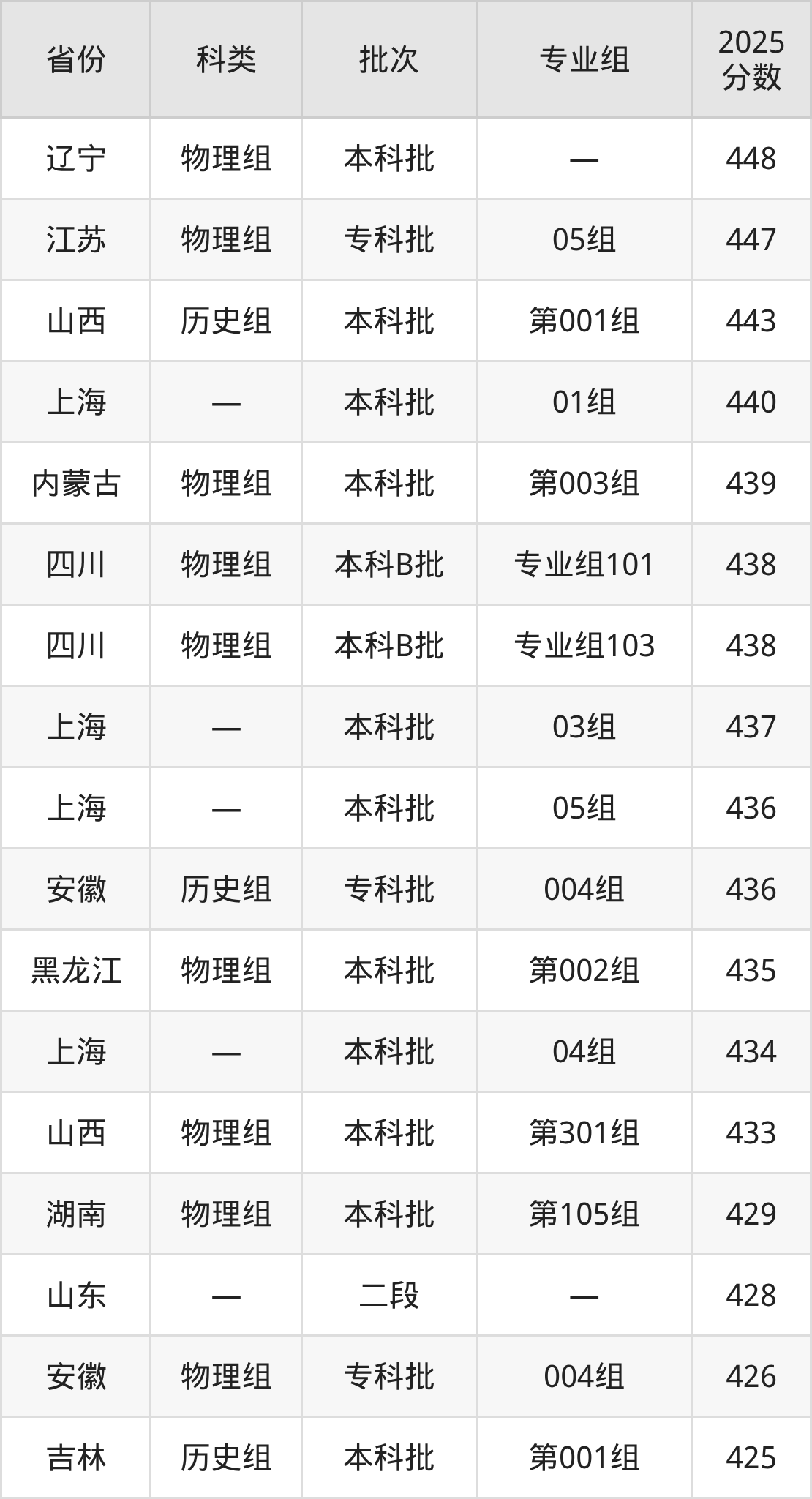 目前能查询到的最新分数为2025年招录数据,2026年上海杉达学院录取分数线会在高考招录结束后公布,本届考生可以利用往年分数预估录取概率。