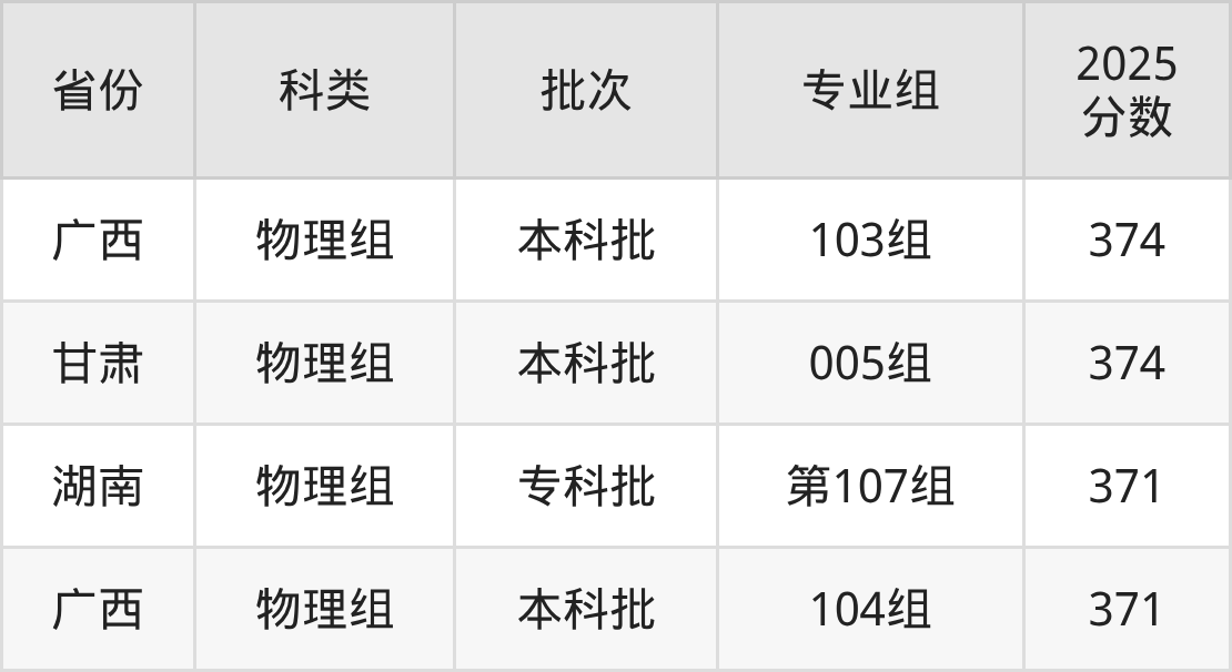上海杉达学院在市外招生的最低分为371分,其中湖南地区物理组考生上上海杉达学院的分数门槛最低,考生成绩超专科线171分(371分)可上。其次是广西物理组考生,上上海杉达学院至少要超本科线1分(371分)。