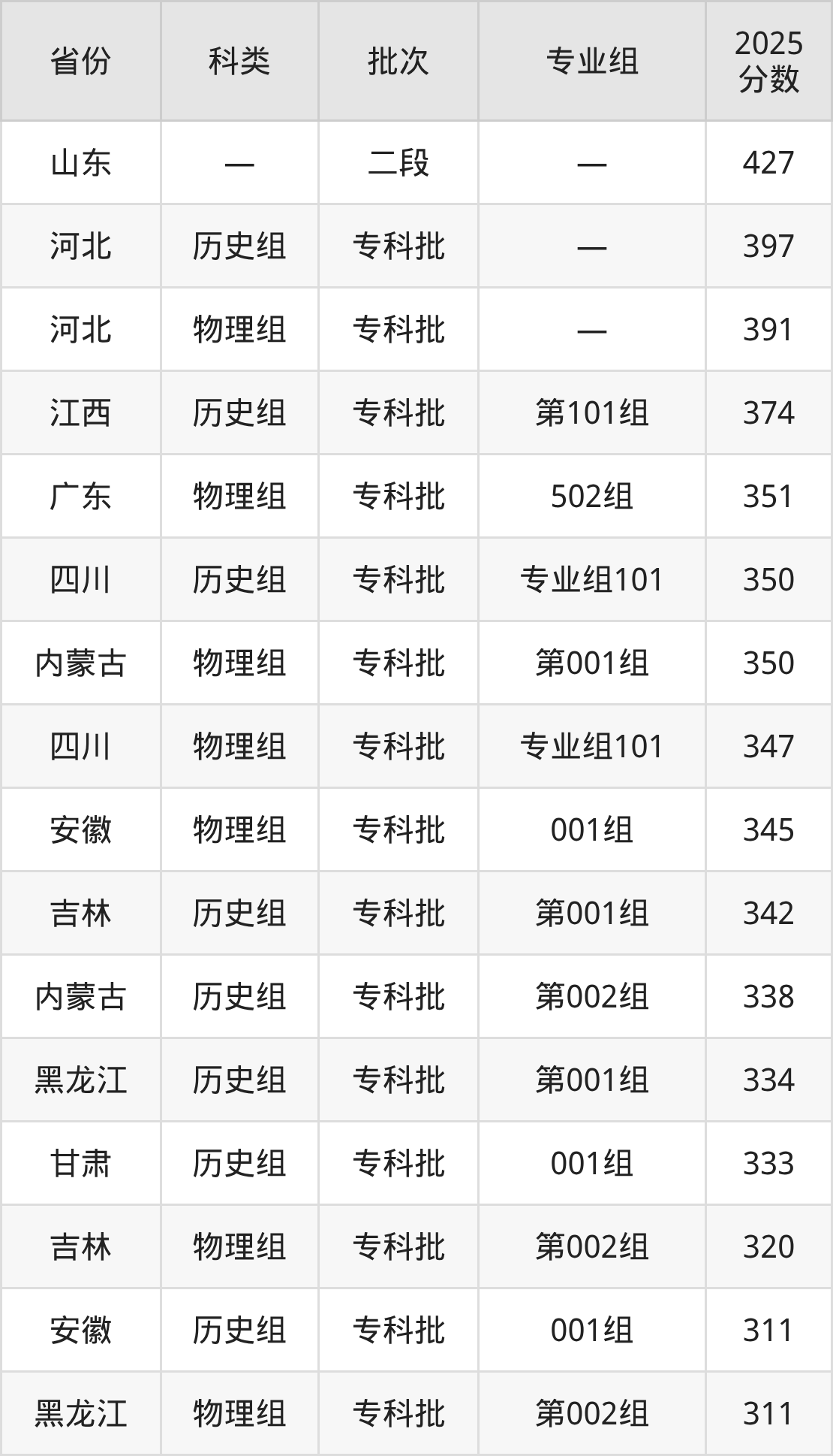而山东地区考生的分数门槛最高,2025年辽宁地质工程职业学院在山东招生最低分为427分,考生至少要超二段线277分才有可能被录取。