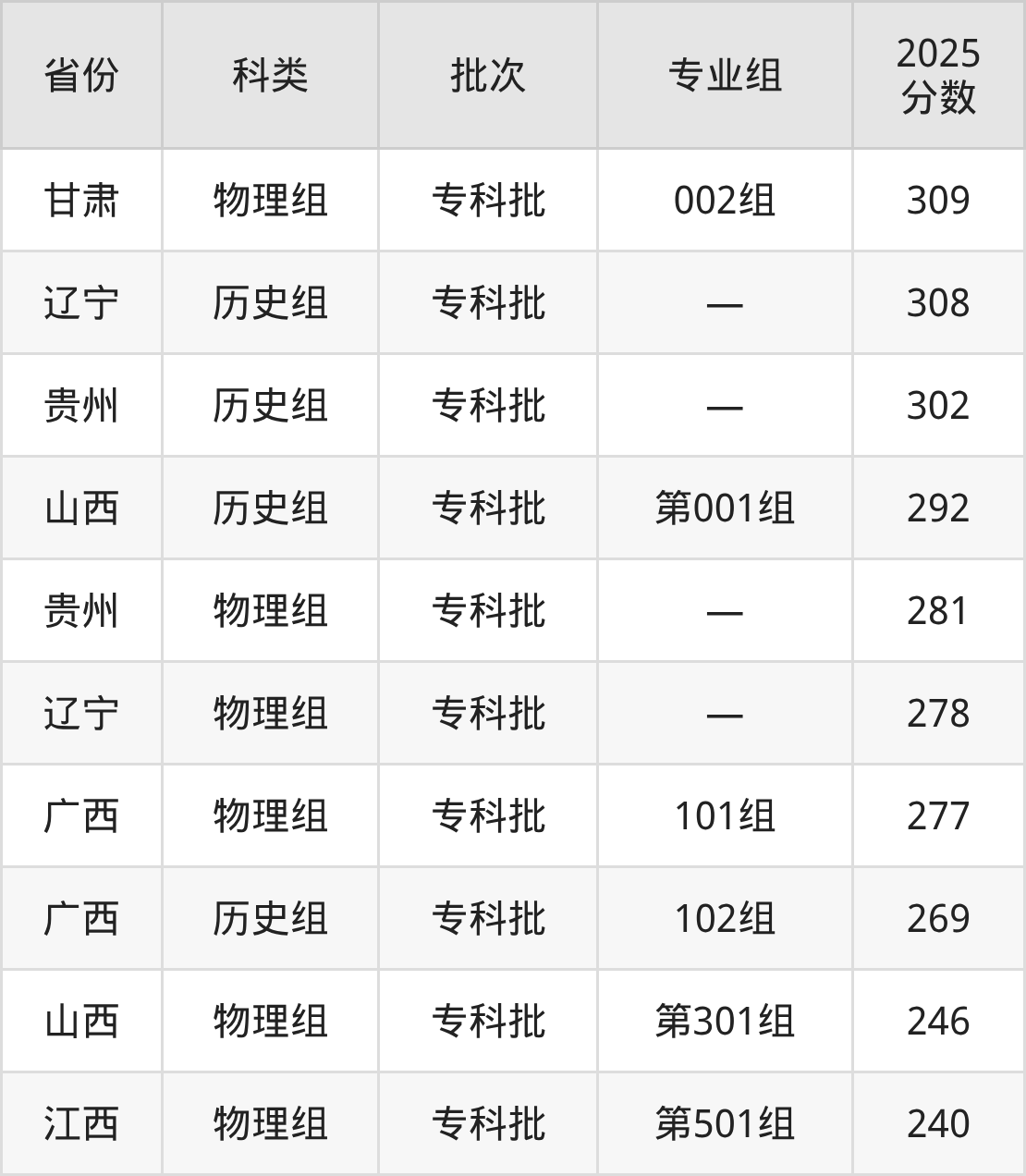 下面是辽宁地质工程职业学院2025年在全国各省的录取分数线一览表,供参考: