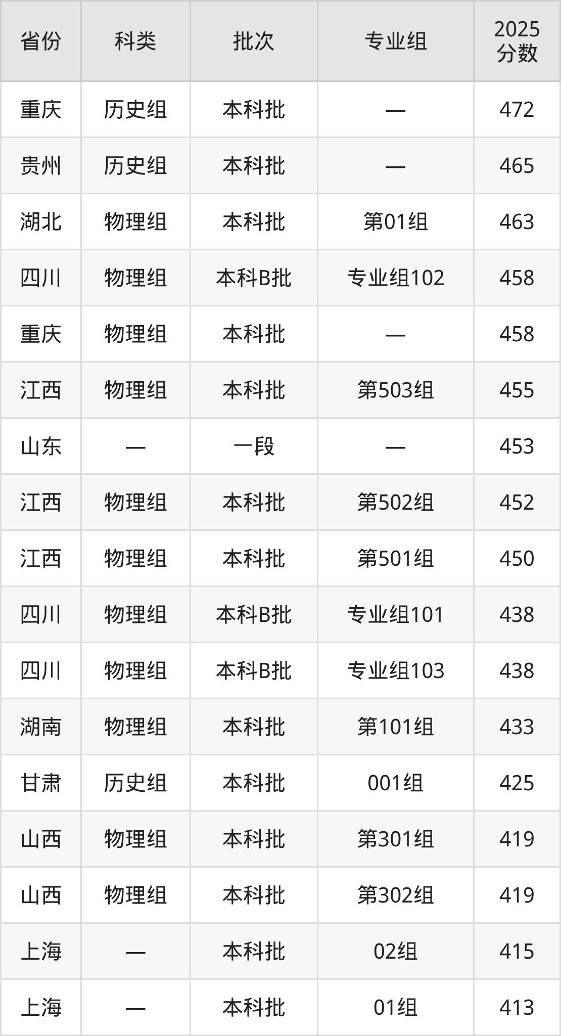 下面是南通大学杏林学院2025年在全国各省的录取分数线一览表,供参考: