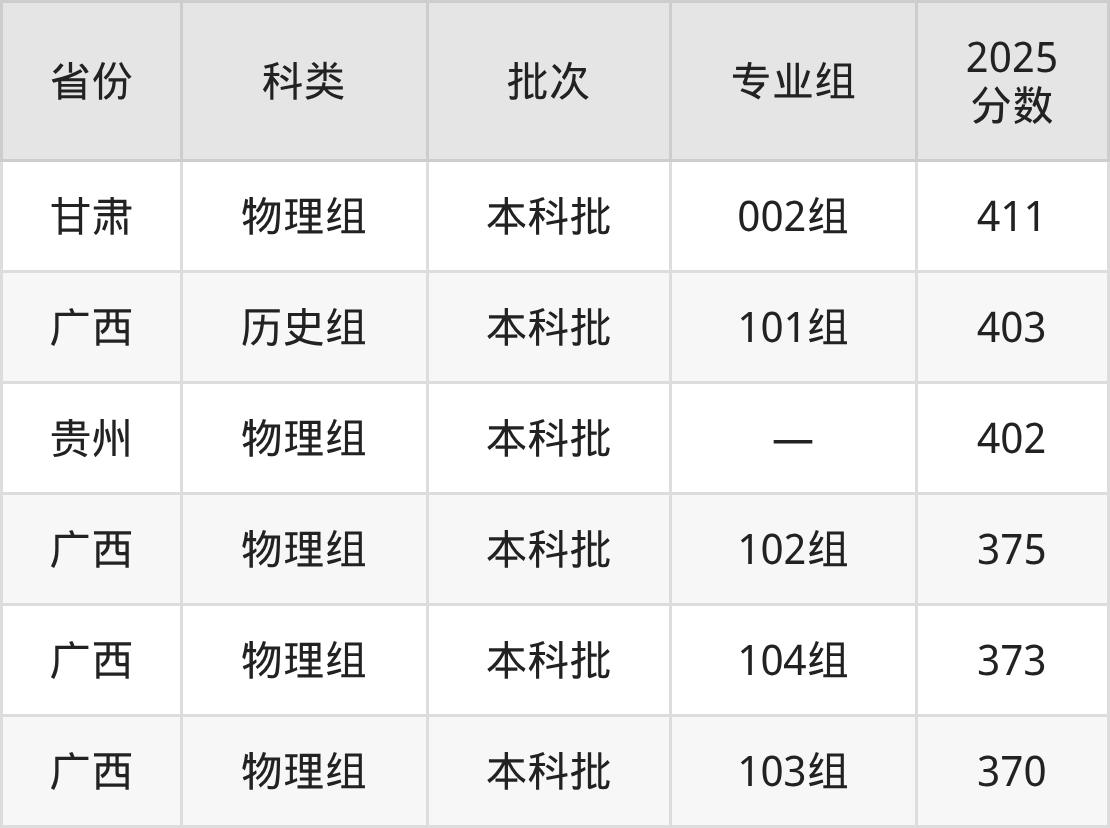 南通大学杏林学院在省外招生的最低分为370分,其中广西地区物理组考生上南通大学杏林学院的分数门槛最低,考生成绩达本科线即可报考。其次是贵州物理组考生,上南通大学杏林学院至少要超本科线15分(402分)。