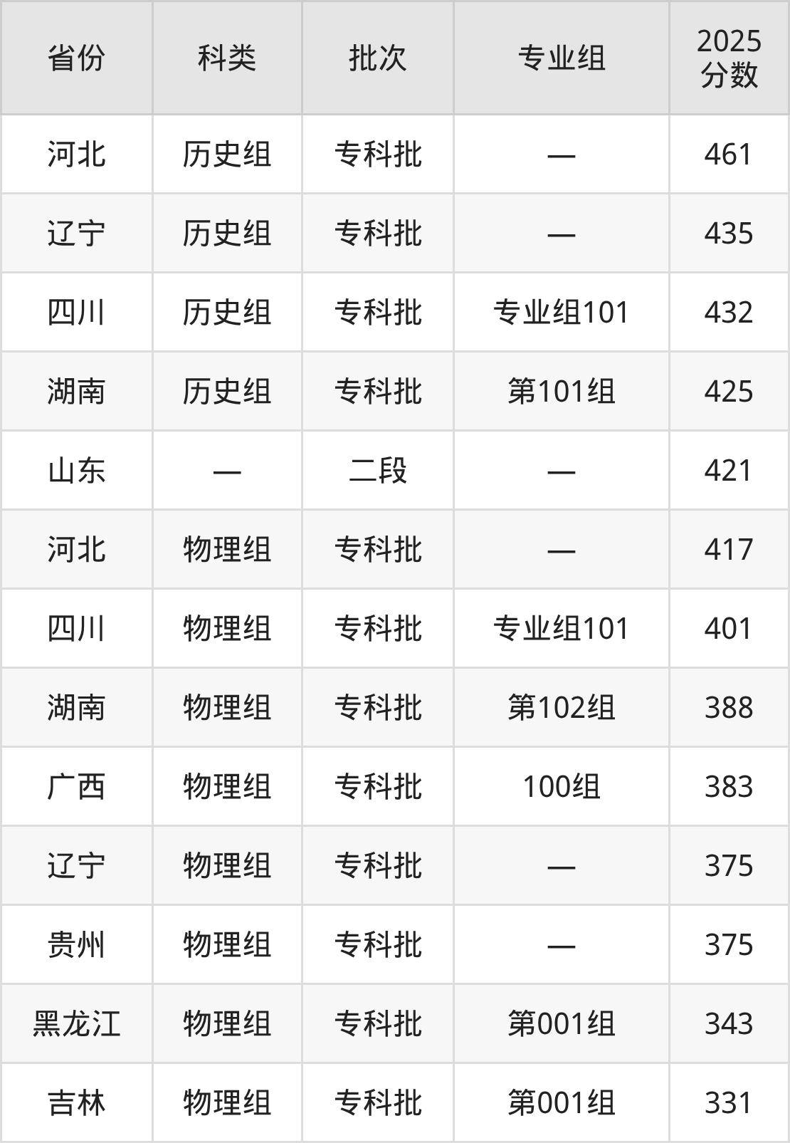 下面是红河卫生职业学院2025年在全国各省的录取分数线一览表,供参考: