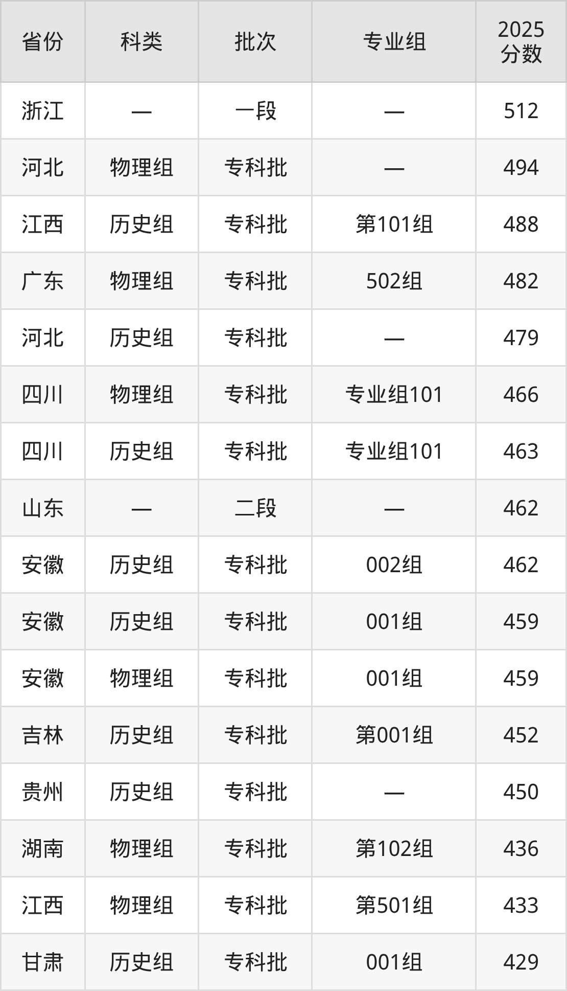 而浙江地区考生的分数门槛最高,2025年开封大学在浙江招生最低分为512分,考生至少要超一段线22分才有可能被录取。