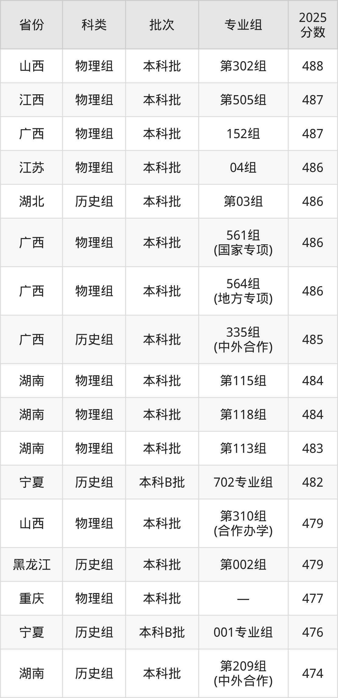 广西民族大学2026年录取分数需在高招结束官方数据公布后更新,2026届有意向报考该校的同学,可以在填报志愿时参考广西民族大学2025年录取分数线: