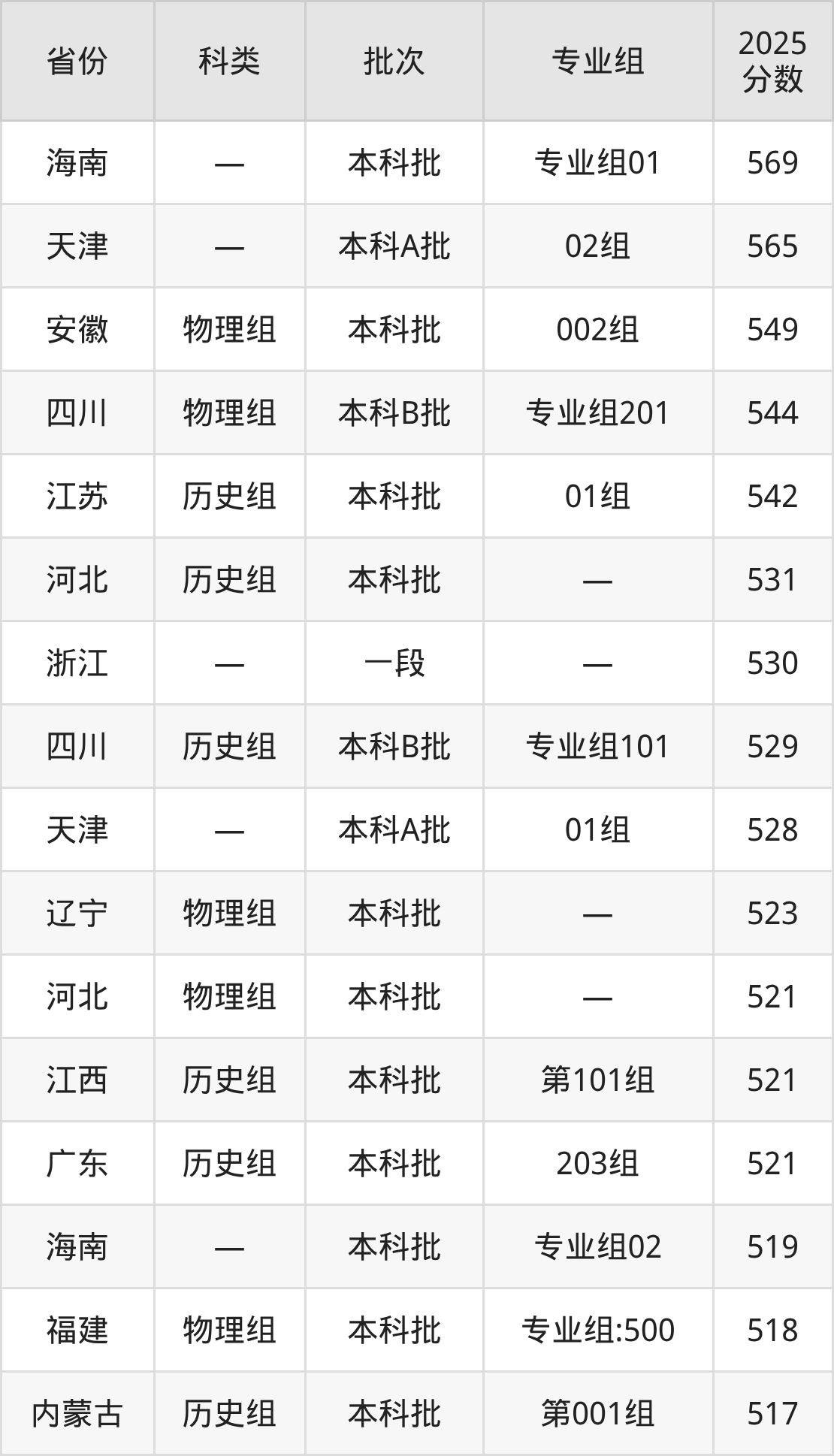 而海南地区考生的分数门槛最高,2025年攀枝花学院专业组01在海南招生最低分为569分,考生至少要超本科线89分才有可能被录取。