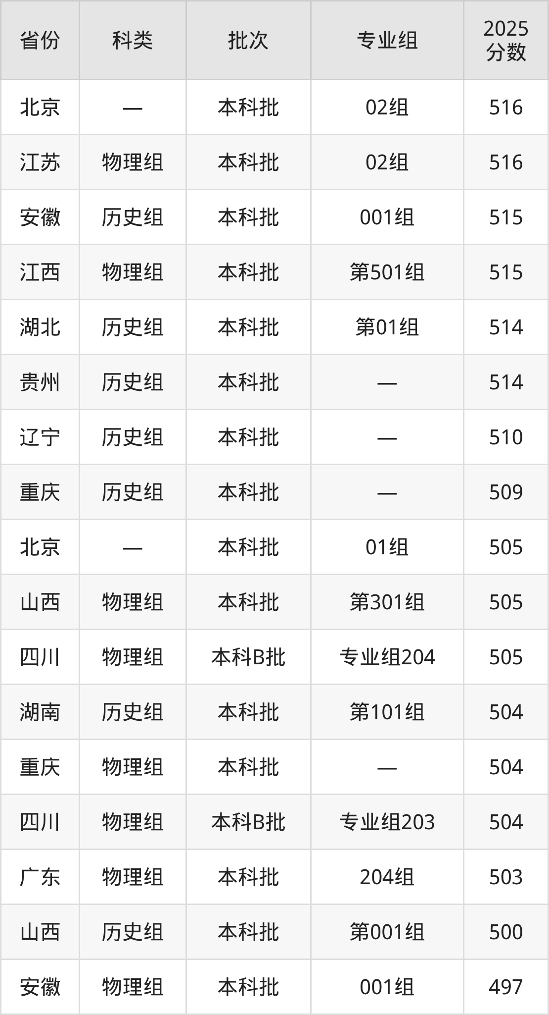 2025年攀枝花学院在全国普通批次招生的录取分数范围位于423~569分之间,其中省内分数范围为495分~544分,物理组最低分专业组为“专业组202”,考生495分即可报考,历史组最低分专业组为“专业组101”,考生529分即可报考。