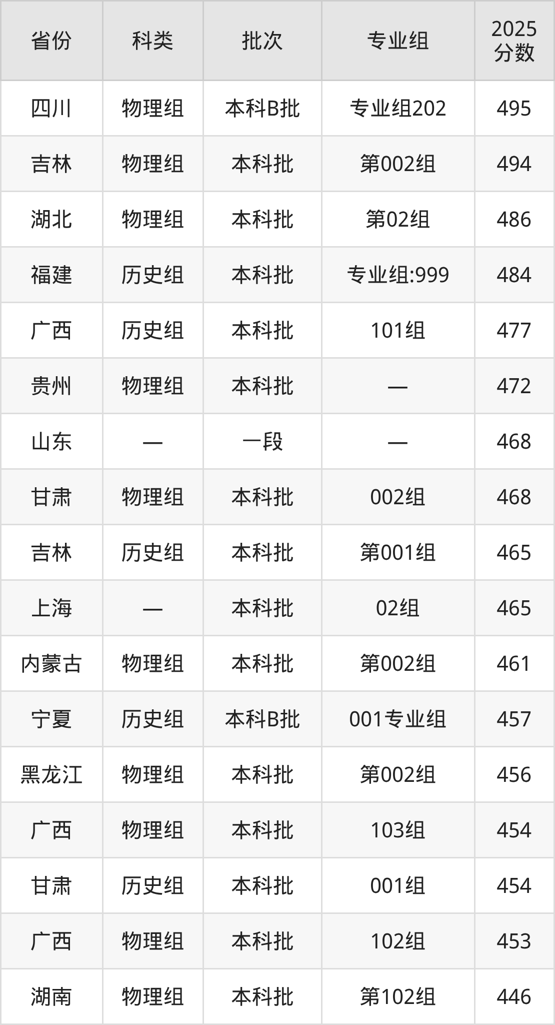 下面是攀枝花学院2025年在全国各省的录取分数线一览表,供参考: