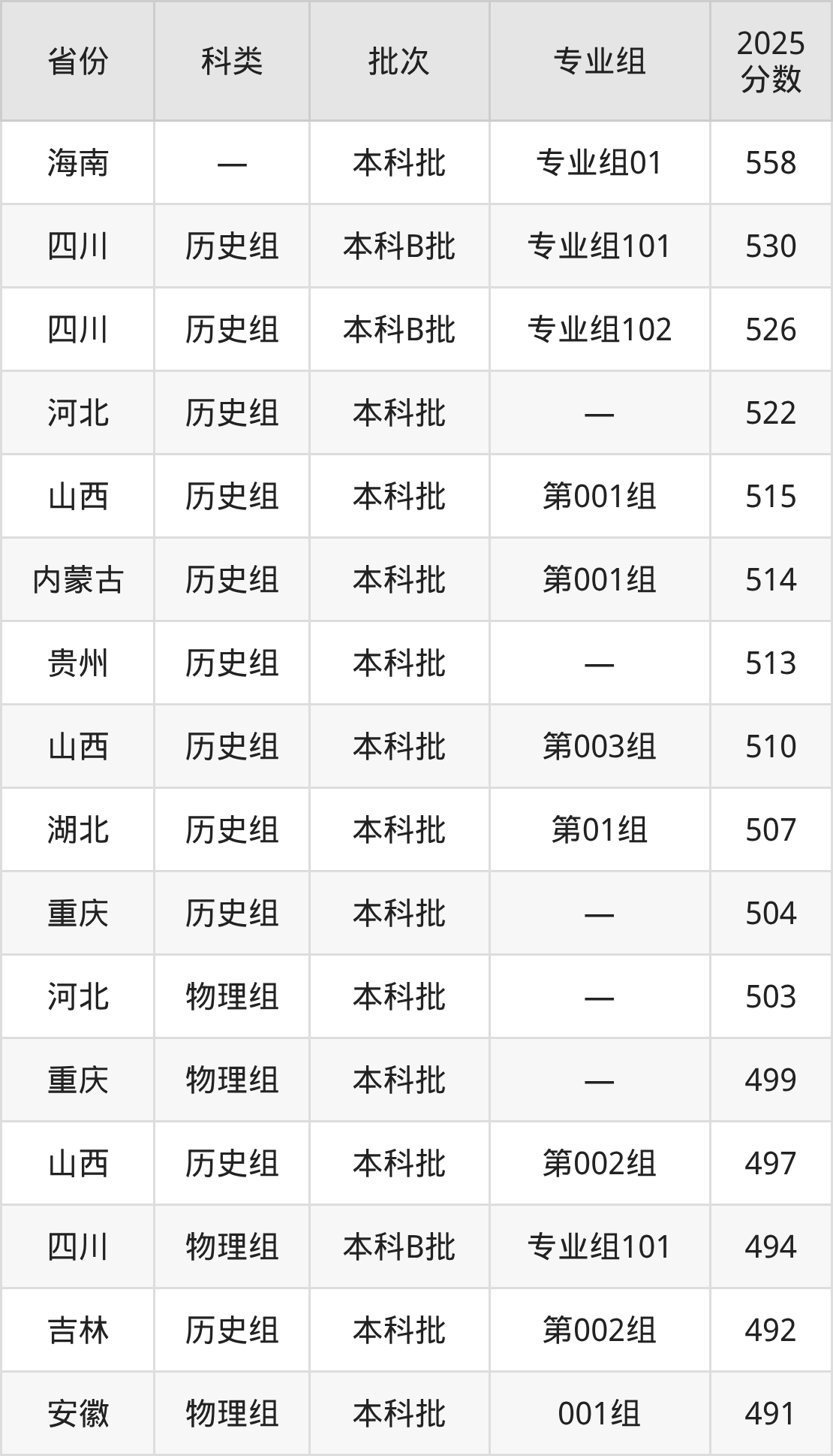 而海南地区考生的分数门槛最高,2025年甘肃民族师范学院专业组01在海南招生最低分为558分,考生至少要超本科线78分才有可能被录取。