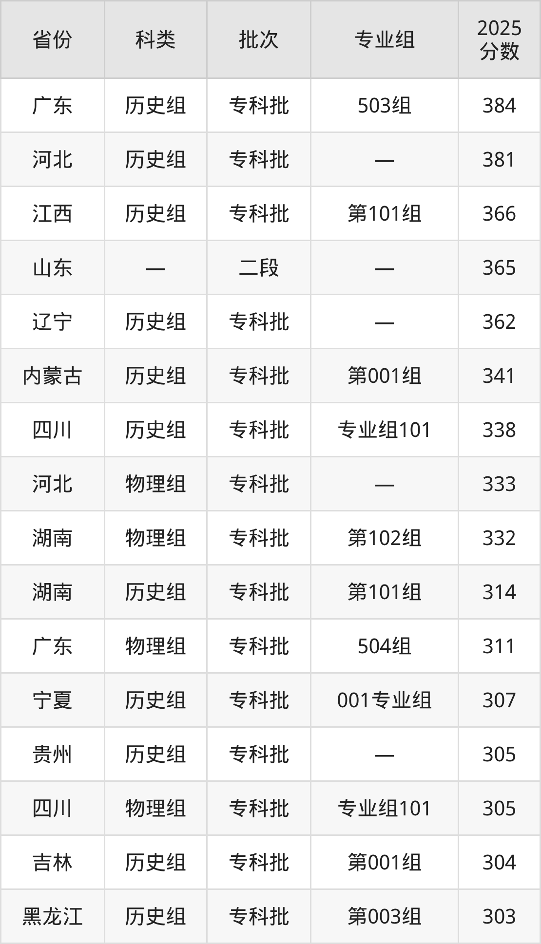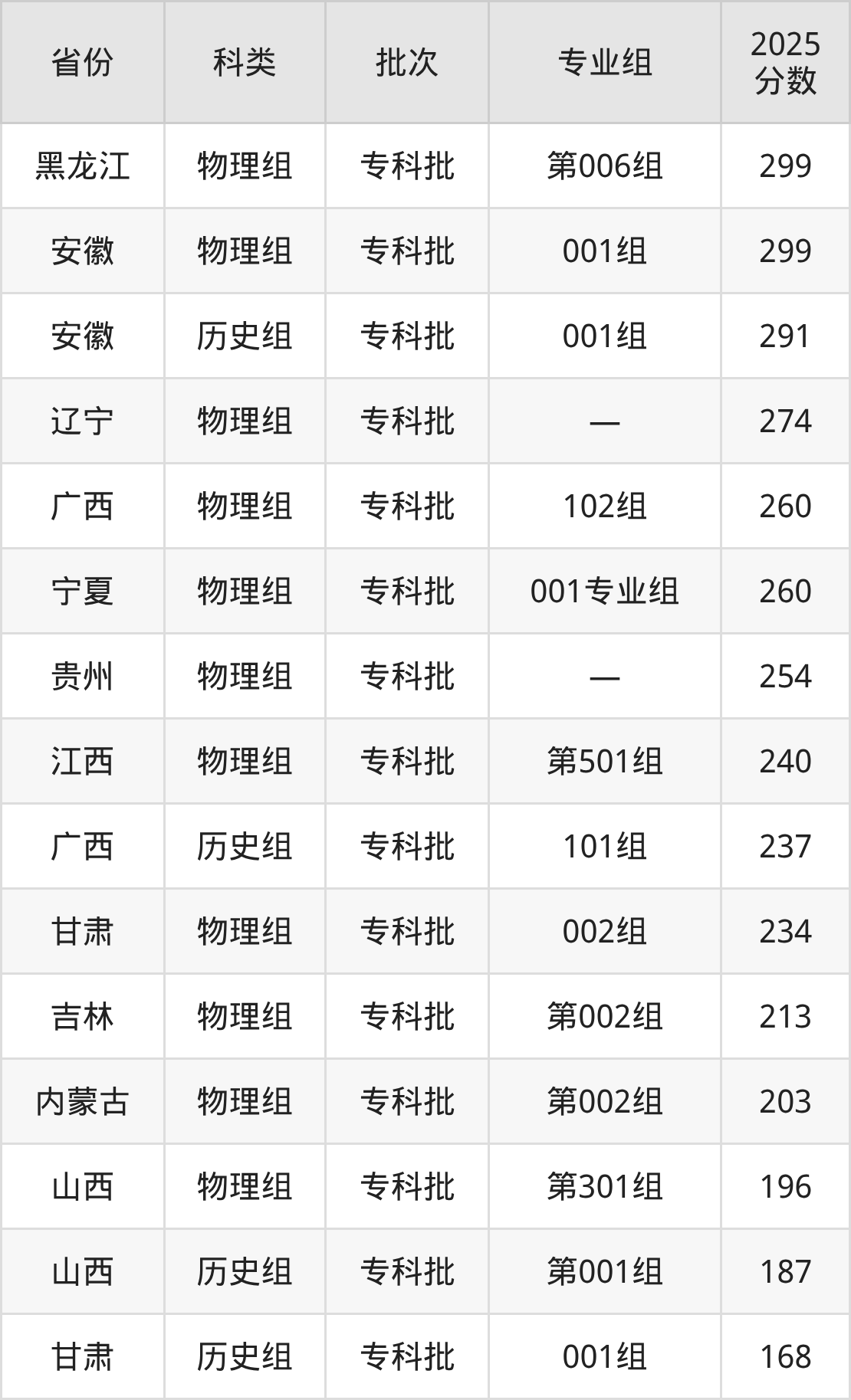 而广东地区历史组考生的分数门槛最高,2025年黑龙江旅游职业技术学院503组在广东招生最低分为384分,考生至少要超专科线169分才有可能被录取。