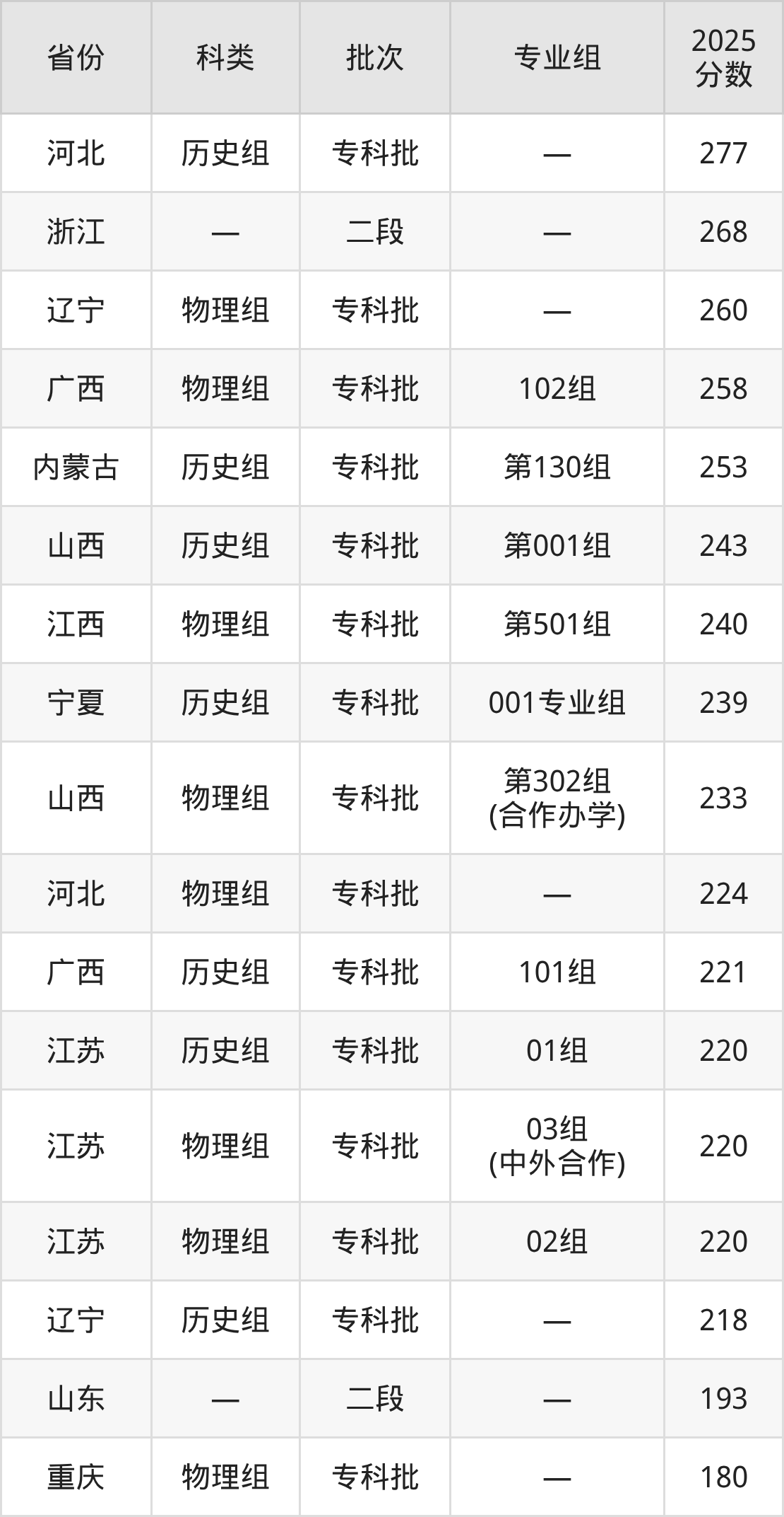 下面是重庆建筑科技职业学院2025年在全国各省的录取分数线一览表,供参考: