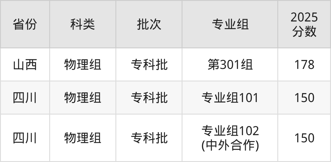 重庆建筑科技职业学院在市外招生的最低分为150分,其中四川地区物理组考生上重庆建筑科技职业学院的分数门槛最低,考生成绩达专科线即可报考。其次是山西物理组考生,上重庆建筑科技职业学院至少要超专科线78分(178分)。