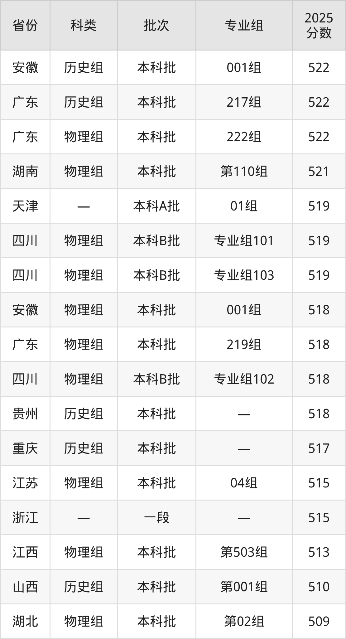 目前能查询到的最新分数为2025年招录数据,2026年湘南学院录取分数线会在高考招录结束后公布,本届考生可以利用往年分数预估录取概率。