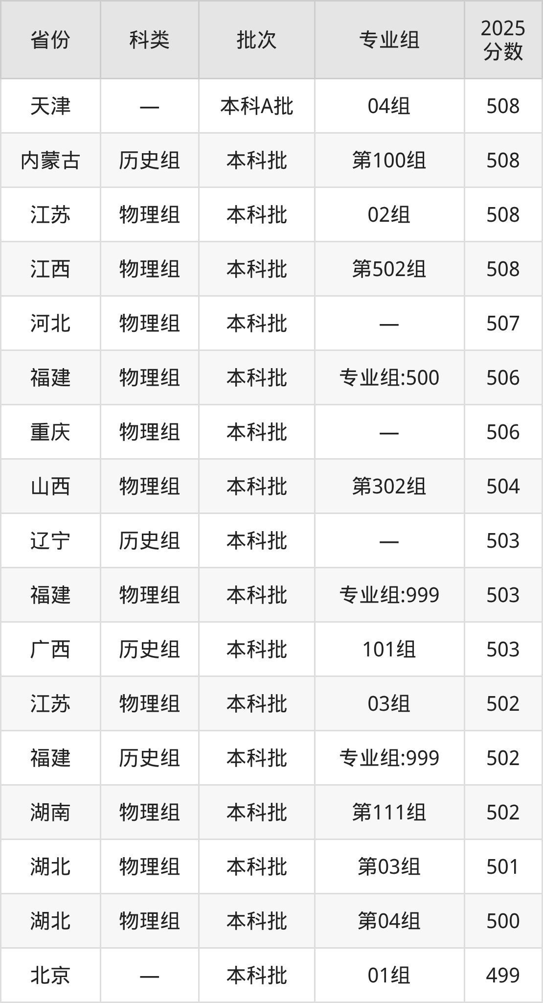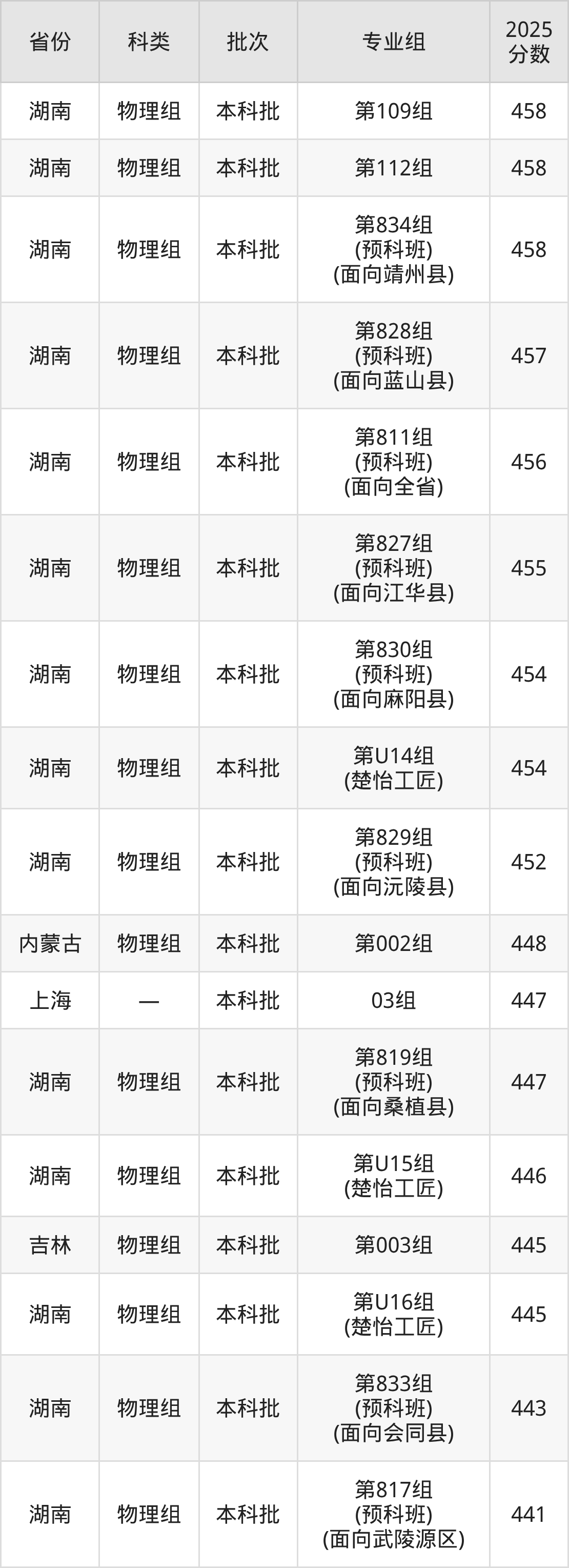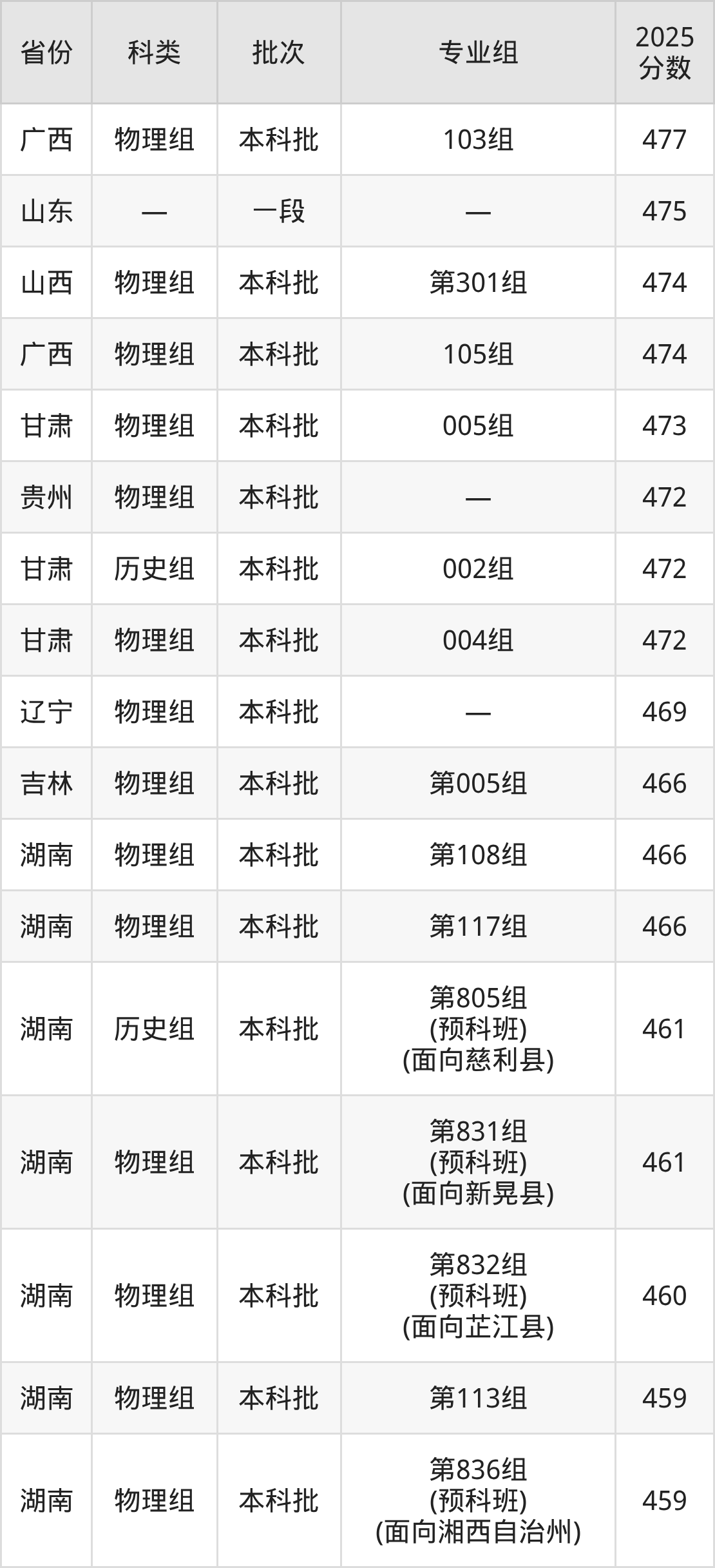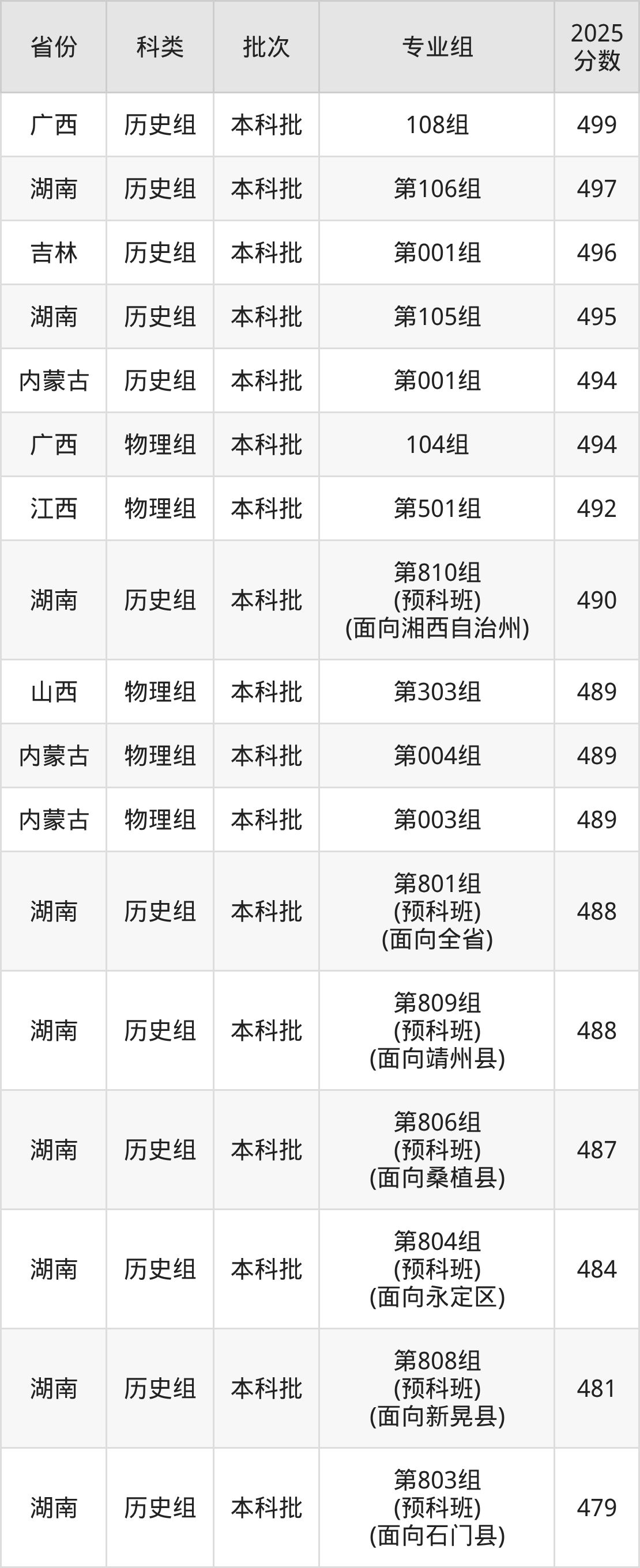 下面是湘南学院2025年在全国各省的录取分数线一览表,供参考: