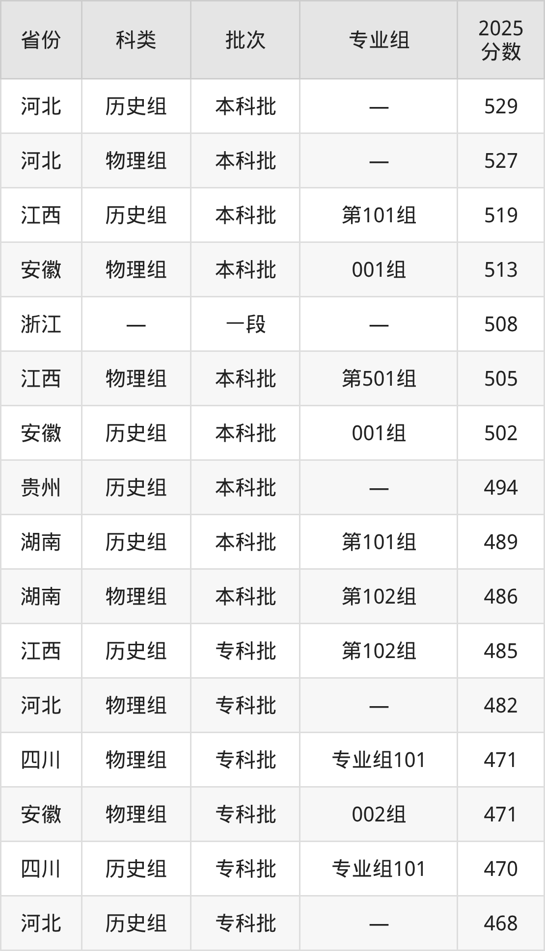 而河北地区历史组考生的分数门槛最高,2025年浙江机电职业技术大学在河北招生最低分为529分,考生至少要超本科线52分才有可能被录取。