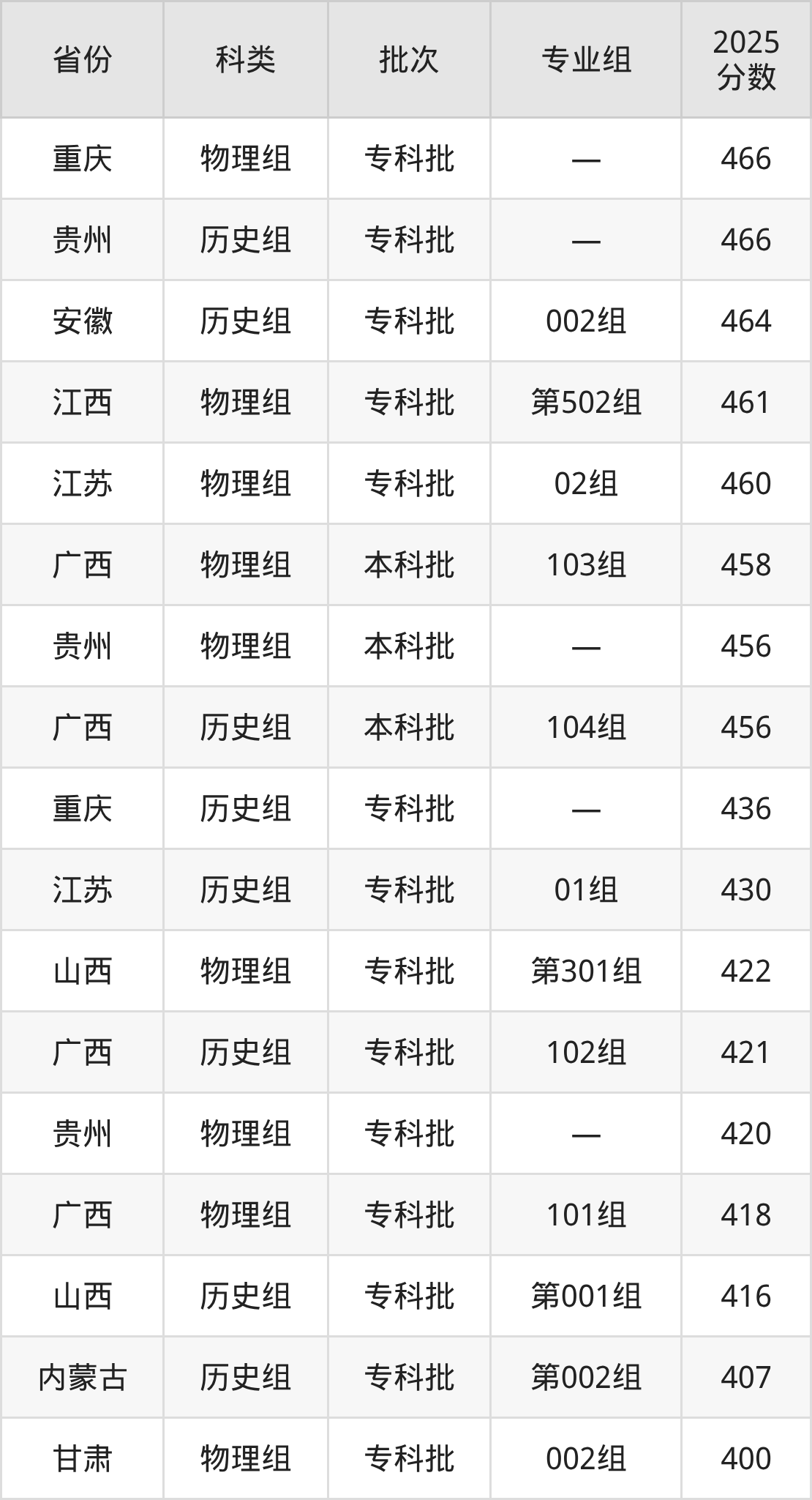 下面是浙江机电职业技术大学2025年在全国各省的录取分数线一览表,供参考: