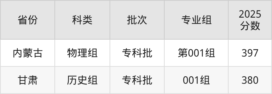 浙江机电职业技术大学在省外招生的最低分为380分,其中甘肃地区历史组考生上浙江机电职业技术大学的分数门槛最低,考生成绩超专科线220分(380分)可上。其次是内蒙古物理组考生,上浙江机电职业技术大学至少要超专科线237分(397分)。