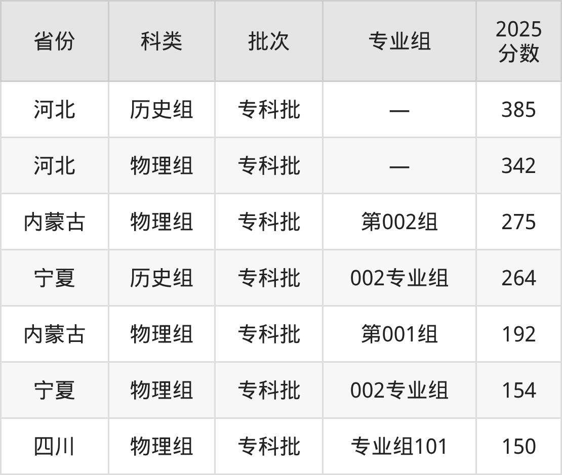 而河北地区历史组考生的分数门槛最高,2025年石嘴山工贸职业技术学院在河北招生最低分为385分,考生至少要超专科线185分才有可能被录取。
