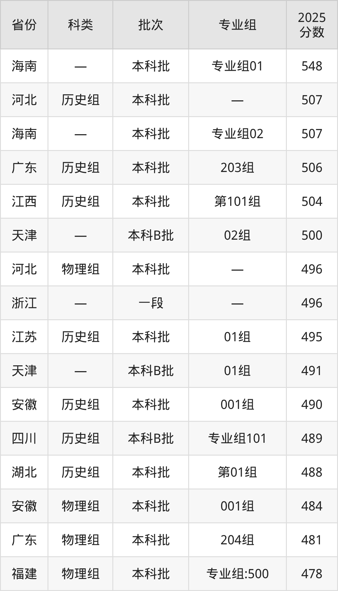 而海南地区考生的分数门槛最高,2025年山西晋中理工学院专业组01在海南招生最低分为548分,考生至少要超本科线68分才有可能被录取。