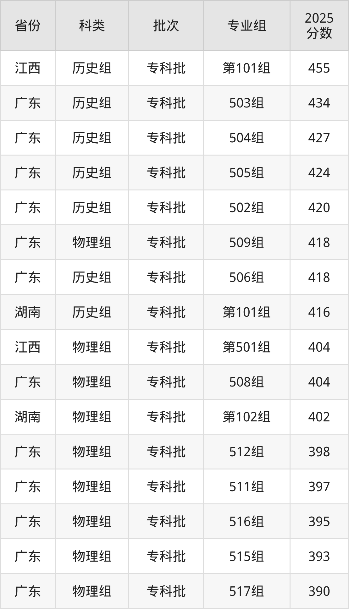 而江西地区历史组考生的分数门槛最高,2025年惠州工程职业学院第101组在江西招生最低分为455分,考生至少要超专科线165分才有可能被录取。