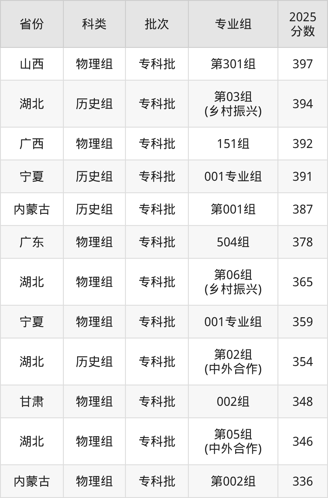 武汉民政职业学院2026年录取分数需在高招结束官方数据公布后更新,2026届有意向报考该校的同学,可以在填报志愿时参考武汉民政职业学院2025年录取分数线: