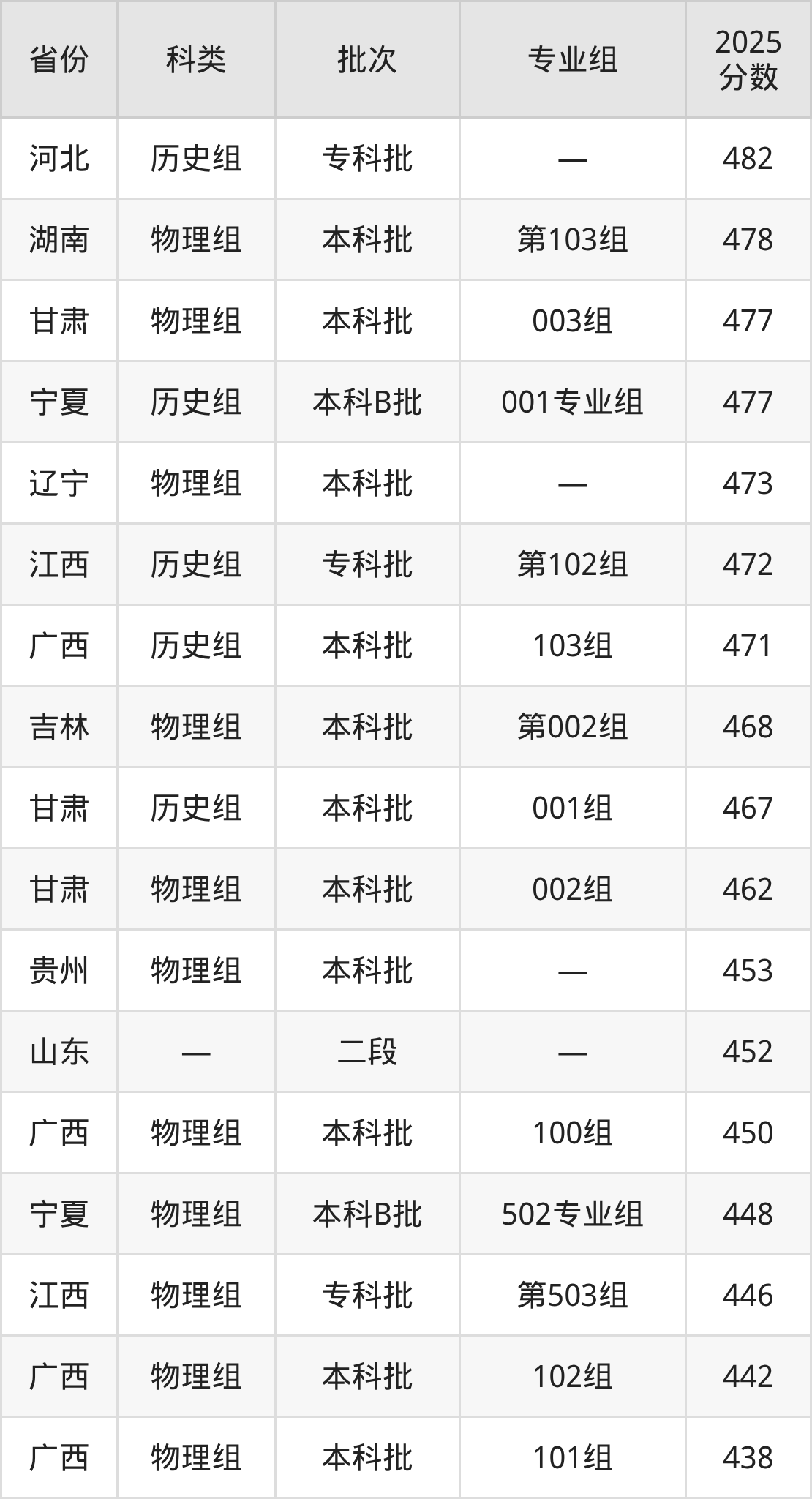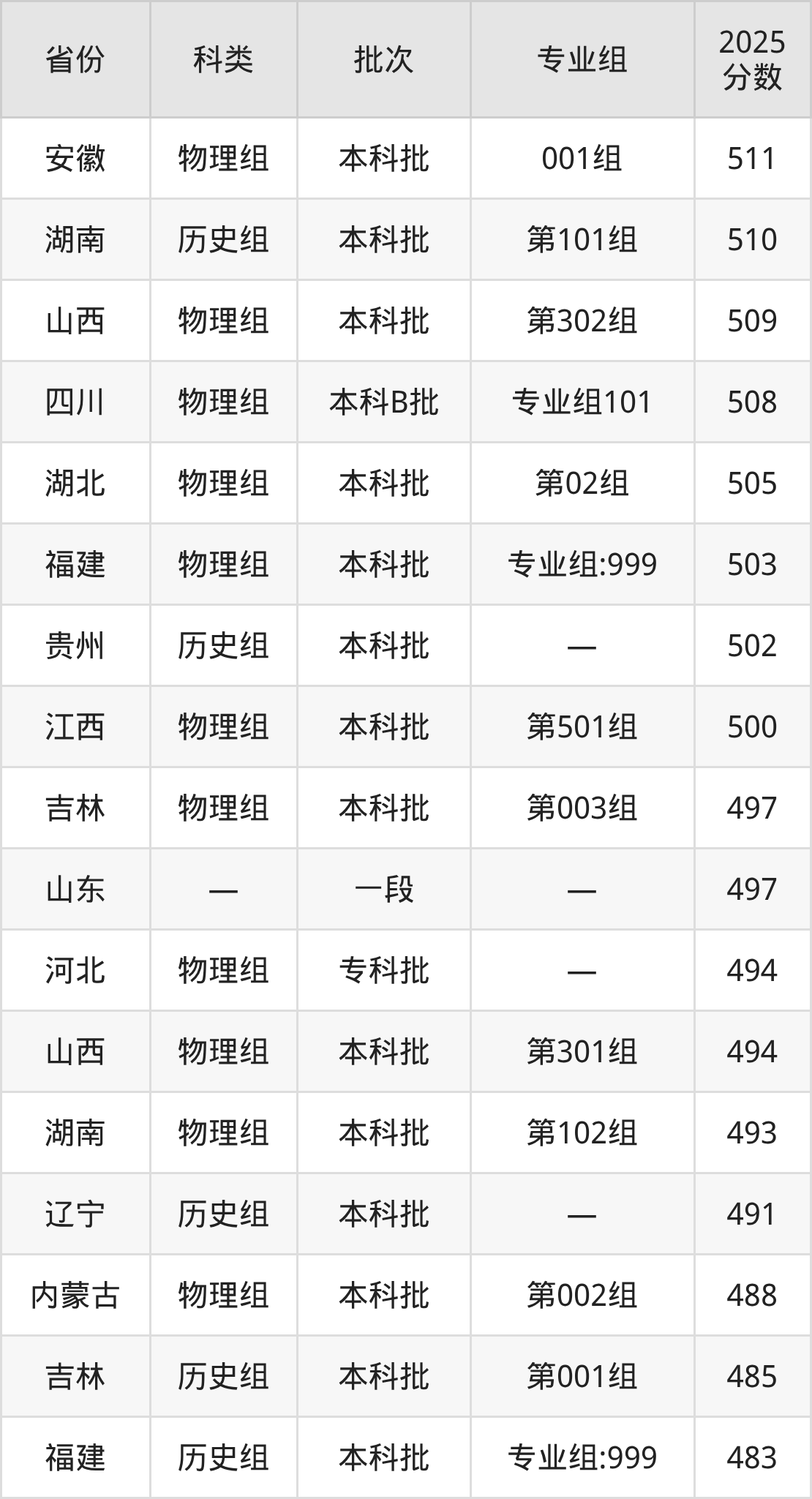 下面是天津中德应用技术大学2025年在全国各省的录取分数线一览表,供参考: