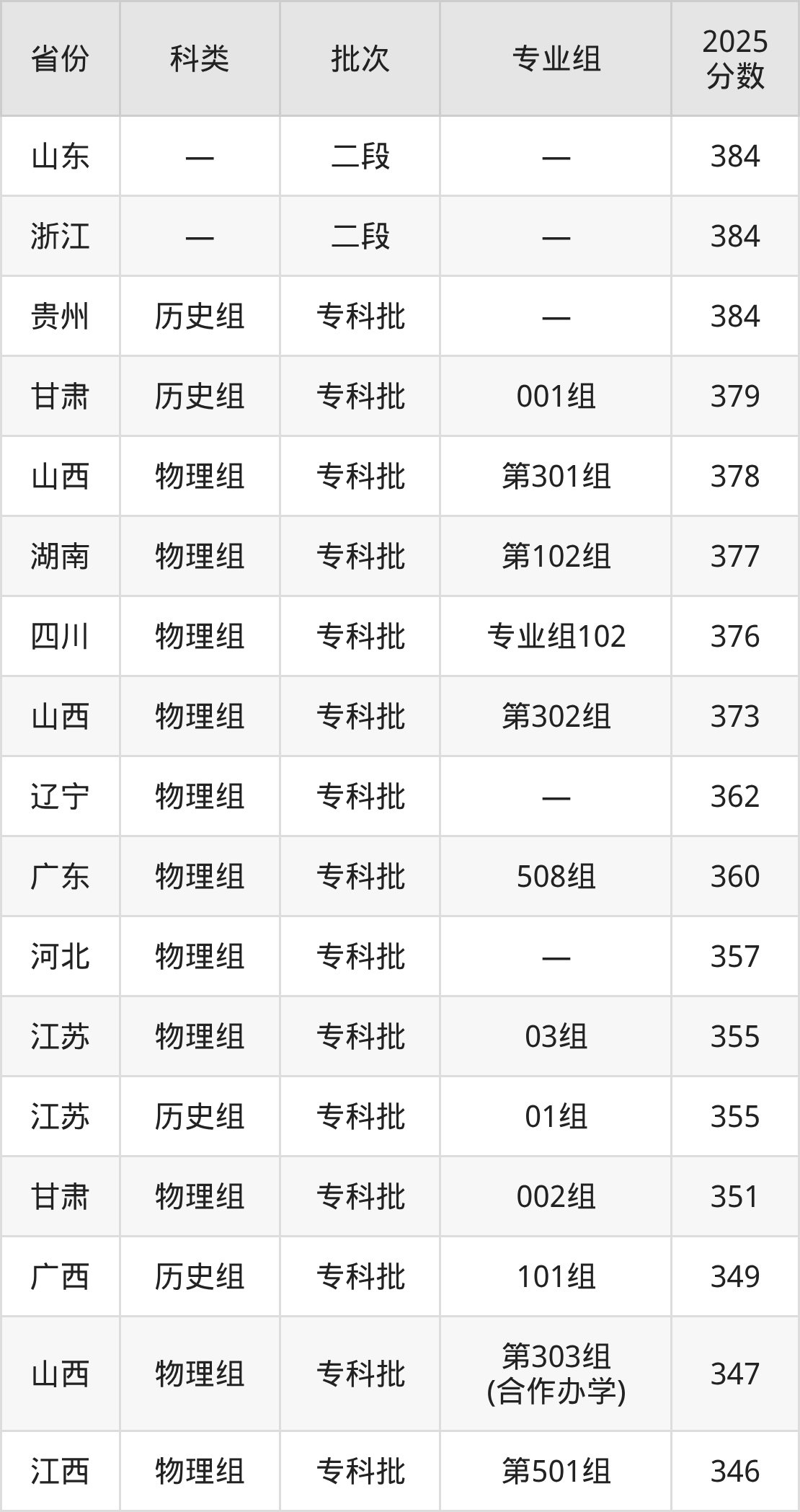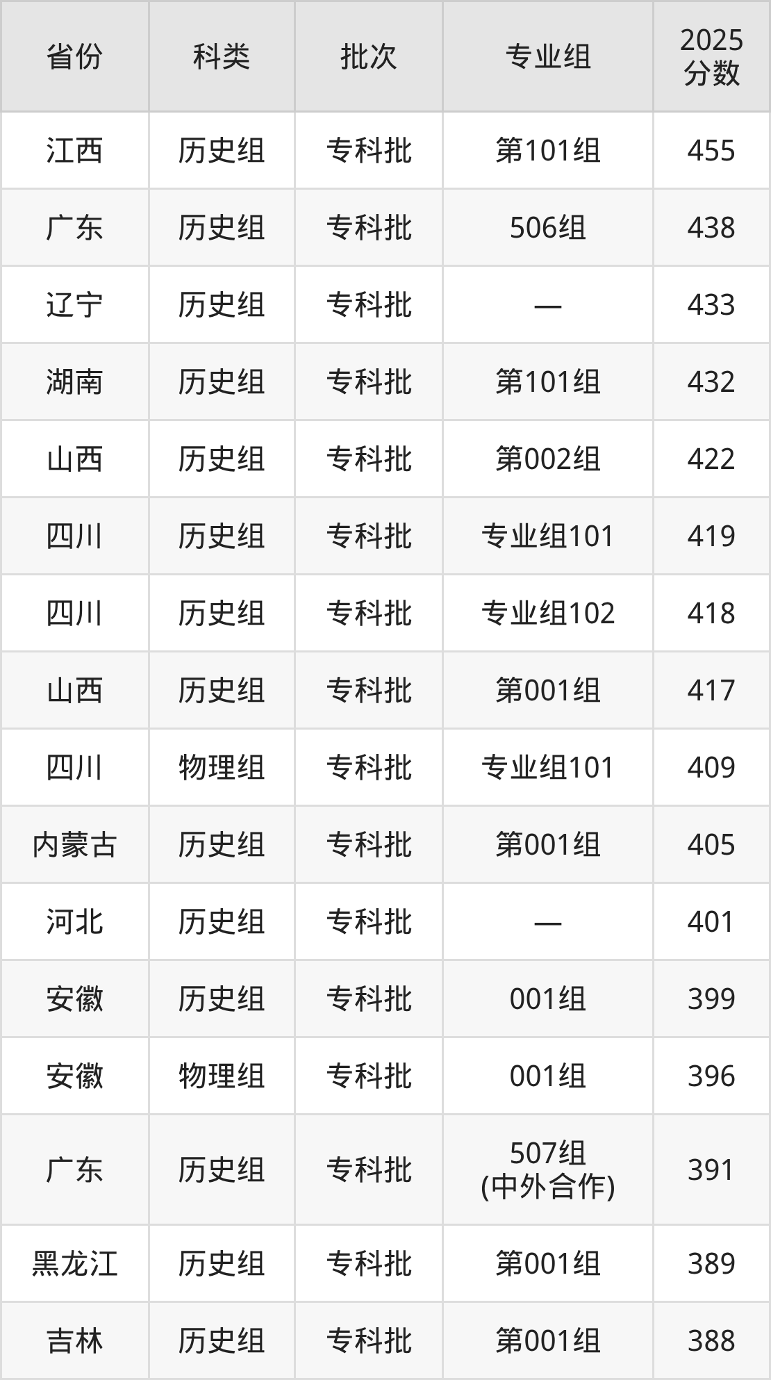而江西地区历史组考生的分数门槛最高,2025年天津商务职业学院第101组在江西招生最低分为455分,考生至少要超专科线165分才有可能被录取。