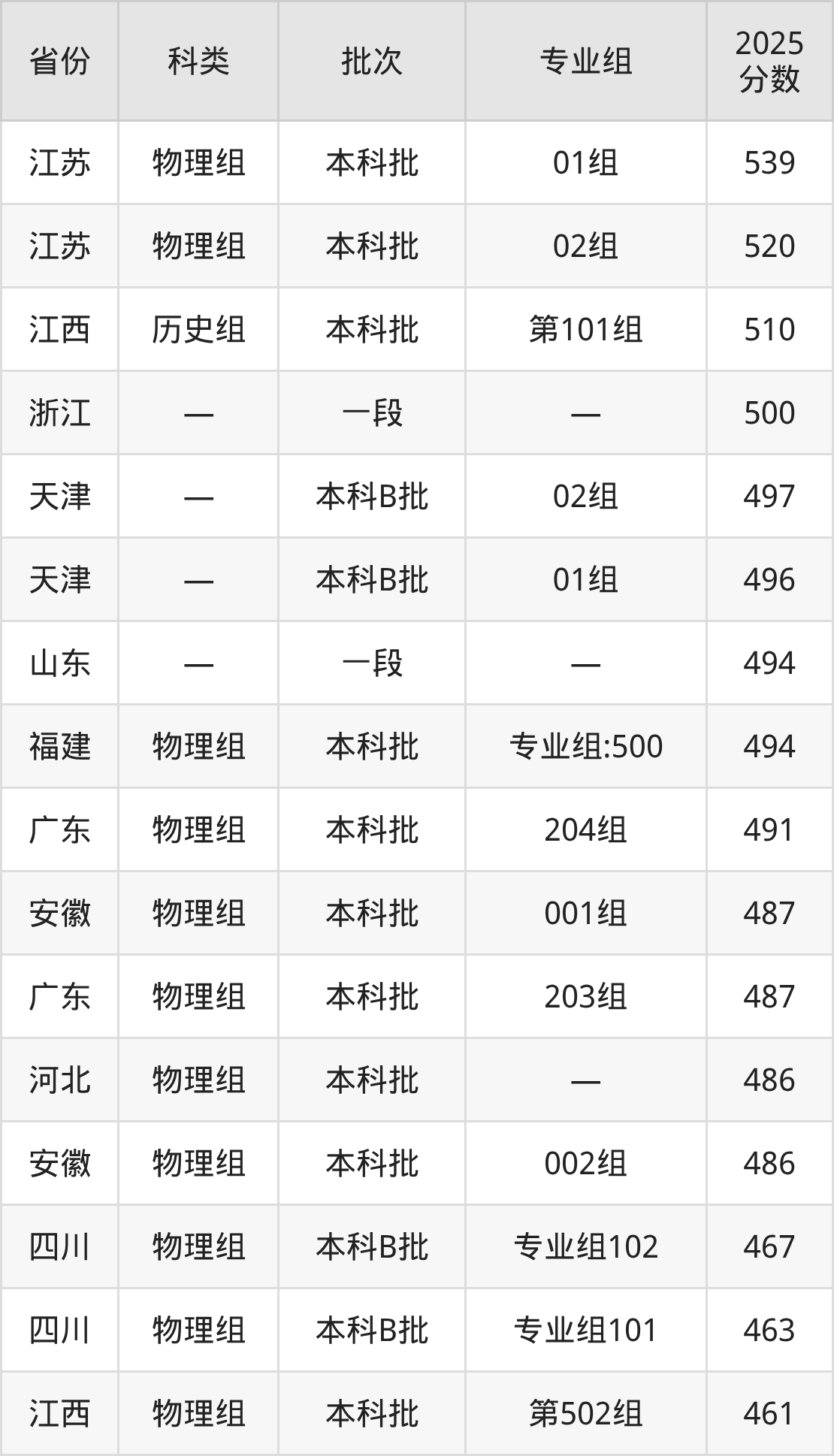 而江苏地区物理组考生的分数门槛最高,2025年中国计量大学现代科技学院01组在江苏招生最低分为539分,考生至少要超本科线76分才有可能被录取。