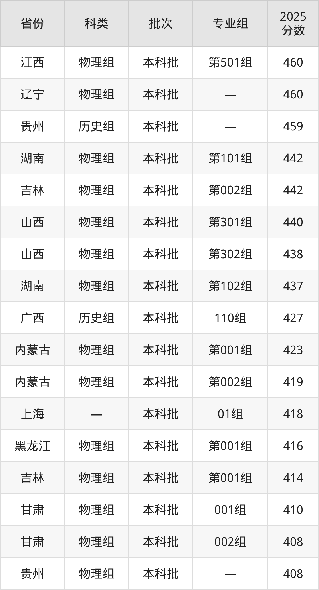 下面是中国计量大学现代科技学院2025年在全国各省的录取分数线一览表,供参考: