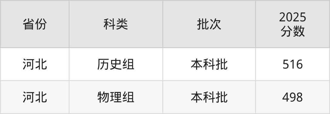目前能查询到的最新分数为2025年招录数据,2026年河北体育学院录取分数线会在高考招录结束后公布,本届考生可以利用往年分数预估录取概率。