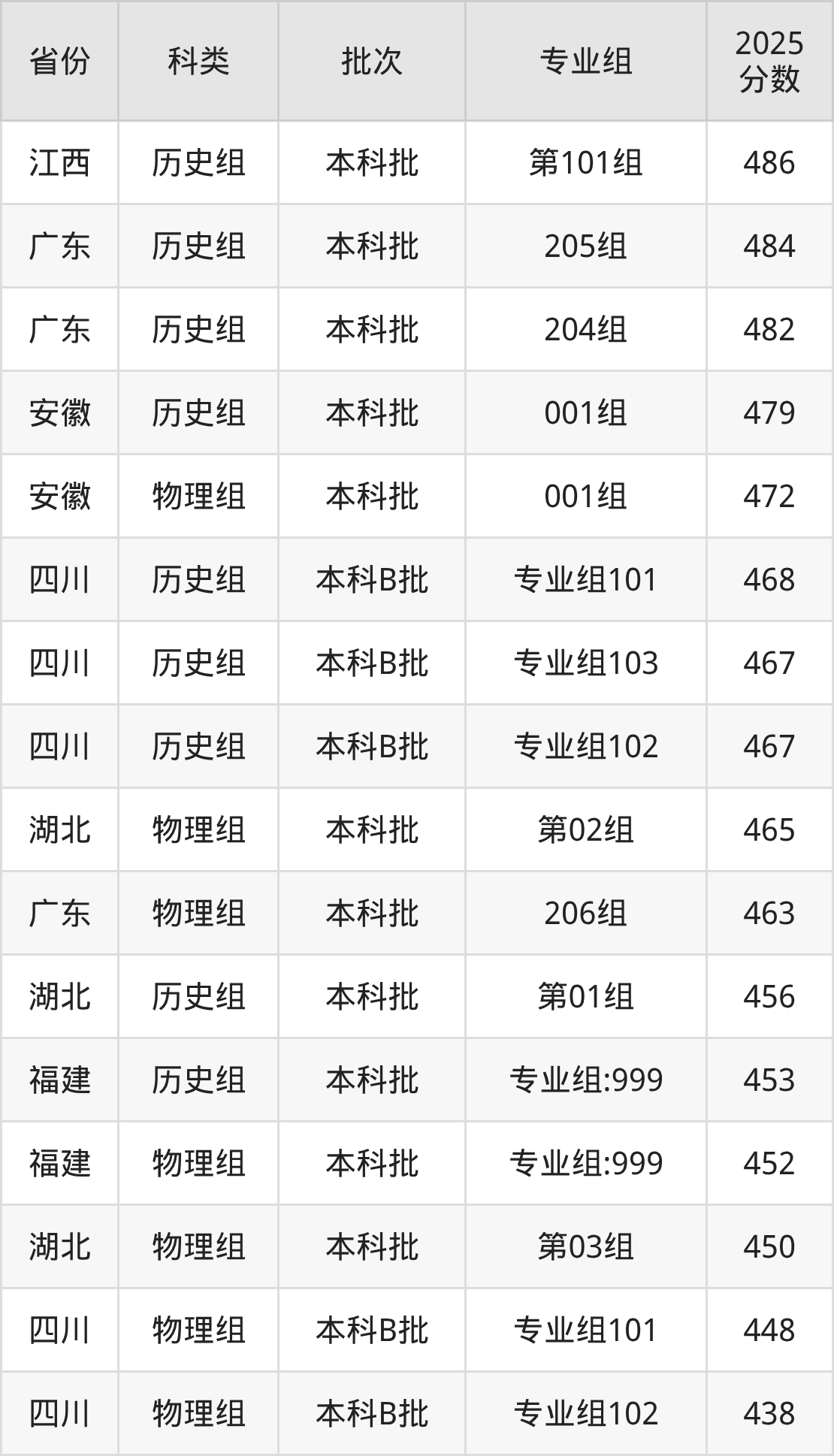 而广东地区历史组考生的分数门槛最高,2025年江西软件职业技术大学205组在广东招生最低分为484分,考生至少要超本科线20分才有可能被录取。