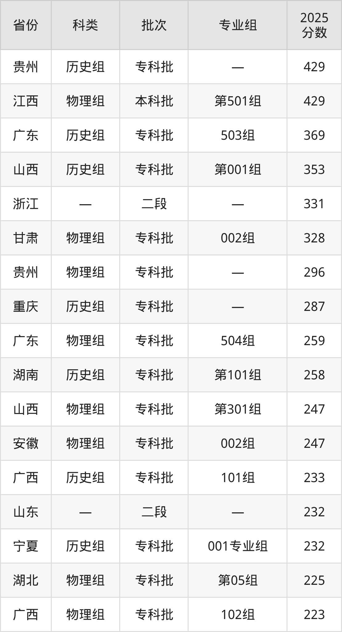 下面是江西软件职业技术大学2025年在全国各省的录取分数线一览表,供参考:
