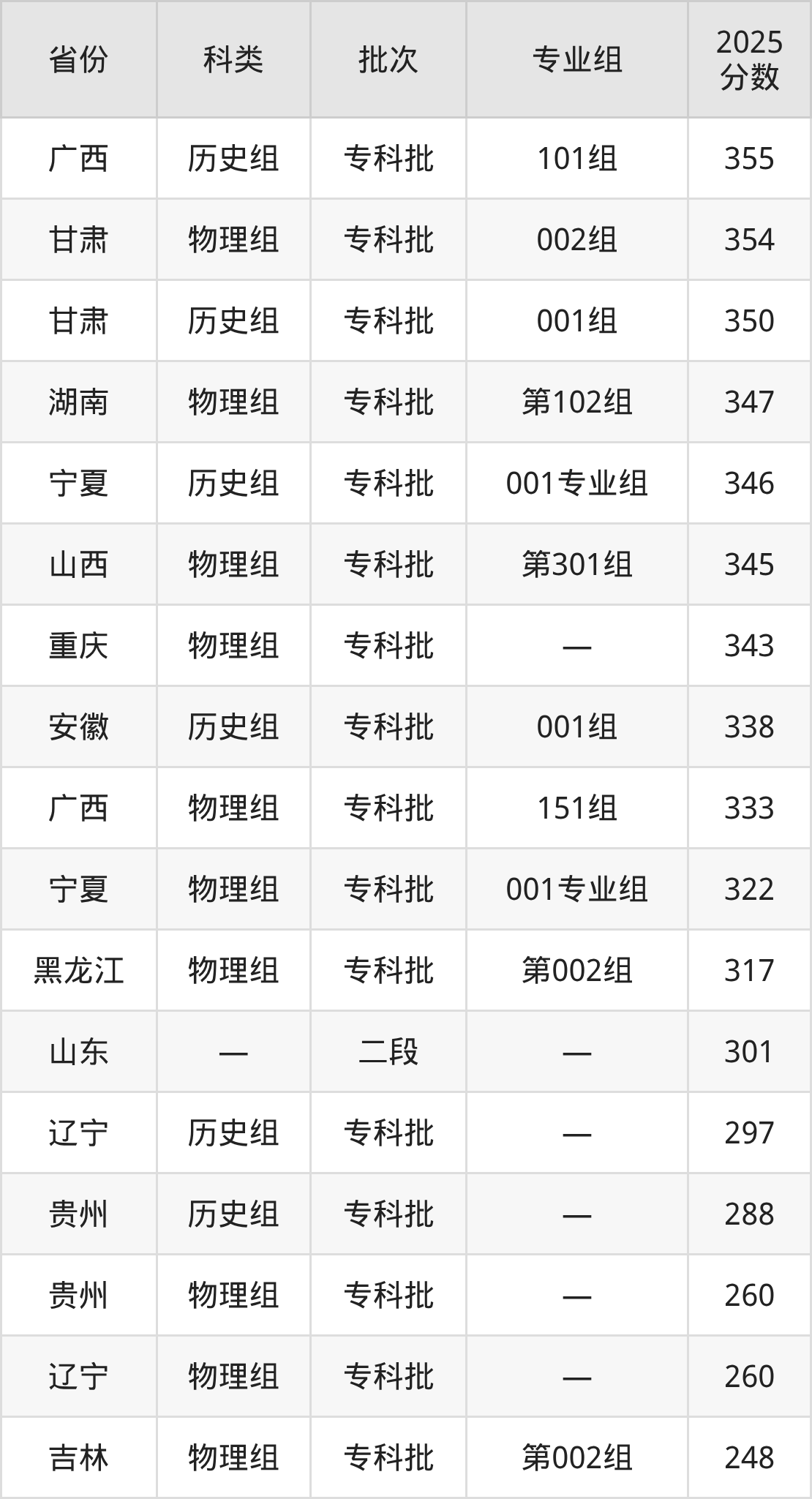 下面是安阳职业技术学院2025年在全国各省的录取分数线一览表,供参考: